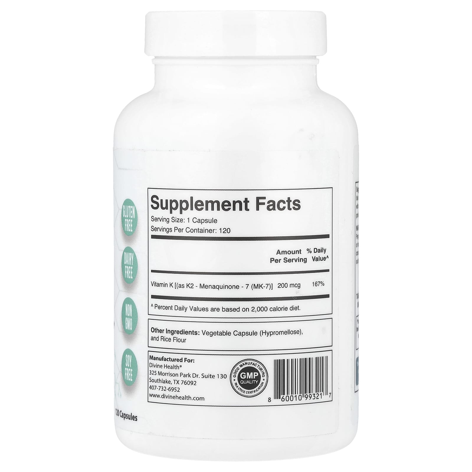 | Витамин К [(в виде K2-менахинона-7 (МК-7)] | 200 мкг | 167% |