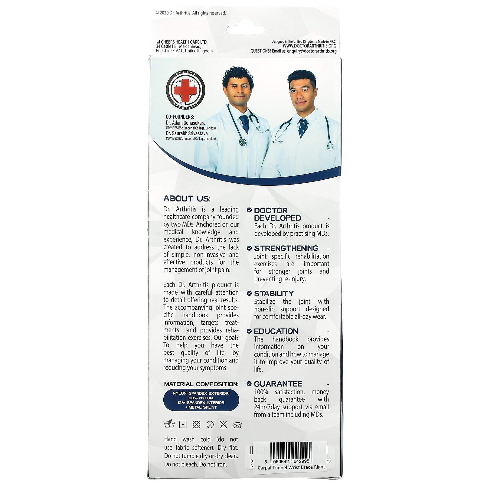Doctor Arthritis, Запястье и справочник для ночного запястья Carpal Tunnel, правый, черный, 1 скоба