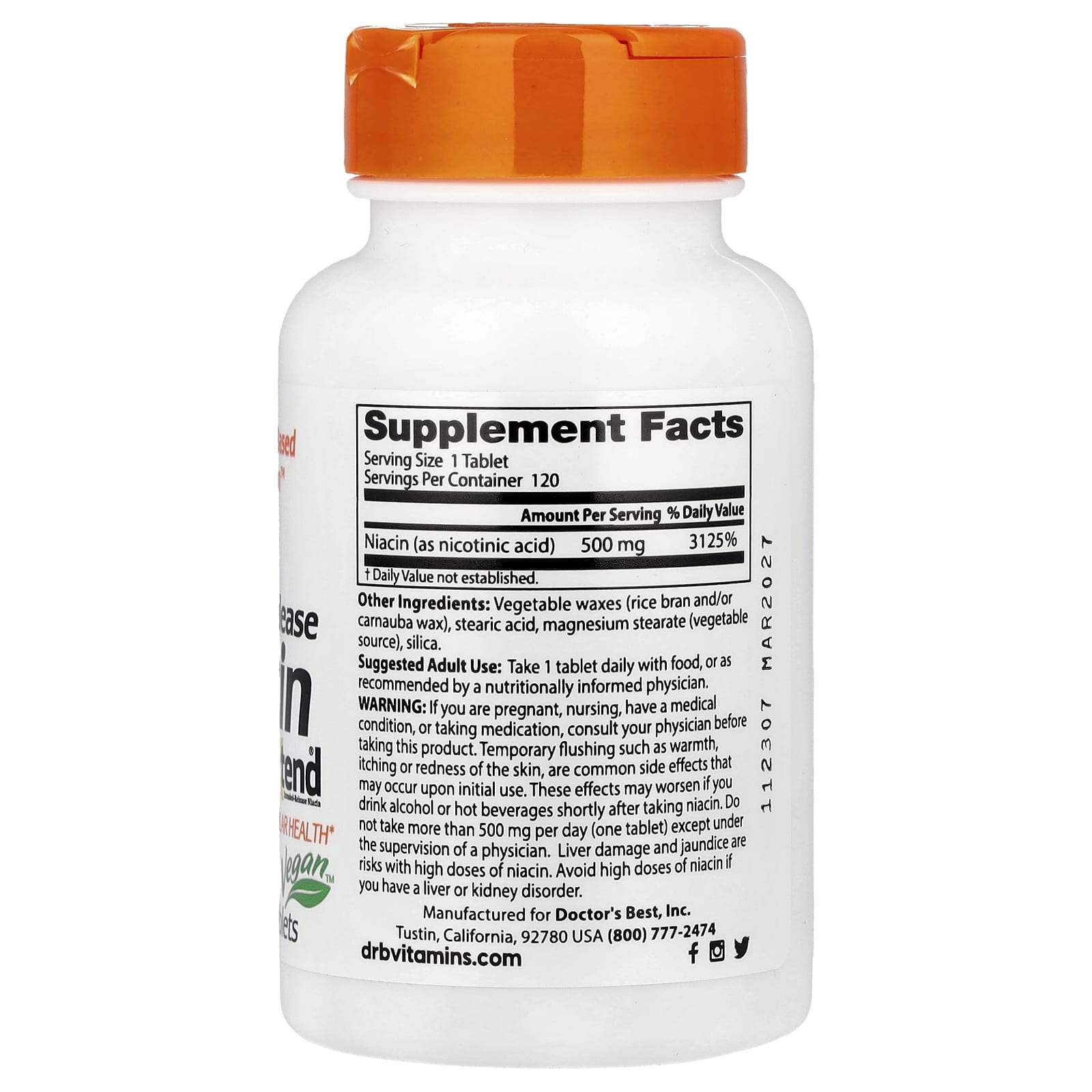 Ниацин с замедленным высвобождением от Doctor's Best с niaXtend® содержит ниацин в форме, которая помогает свести к минимуму возникновение дискомфортного покраснения кожи, которое обычно ассоциируется с приемом ниацина. Приблизительно 200 коферментов состоят из ниацина, которые играют ключевую роль в обмене веществ и выработке энергии в организме. niaXtend® был протестирован на поддержание благоприятного липидного профиля крови. Исследования показывают, что ниацин в сочетании со сбалансированной диетой может помочь поддерживать здоровый уровень холестерина в пределах нормы.