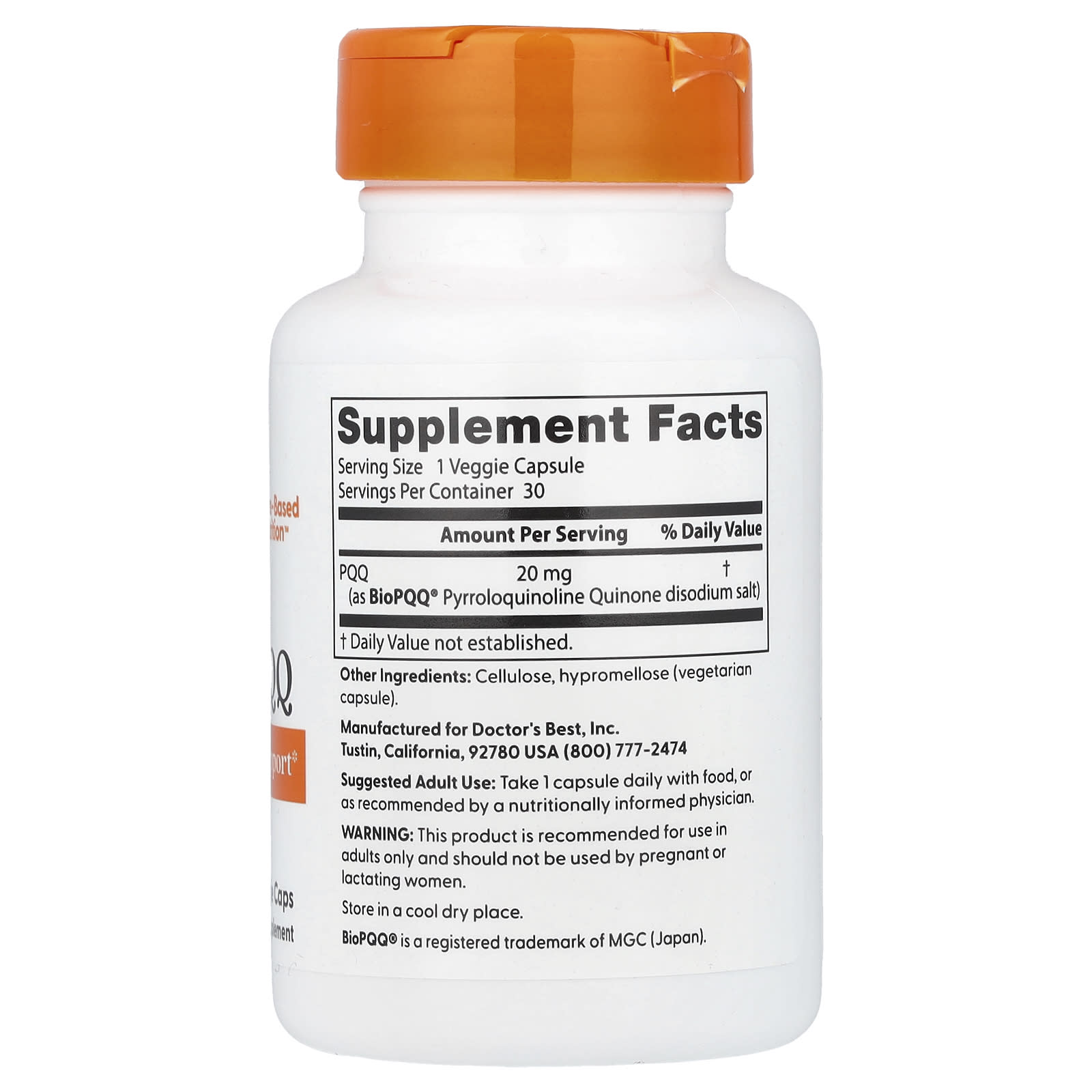 PQQ с BioPQQ® от Doctor's Best содержит пирролохинолинхинон (PQQ). PQQ — это полифенол с антиоксидантными свойствами, который играет важную роль для выработки энергии, а также поддерживает нервные клетки и когнитивные функции.