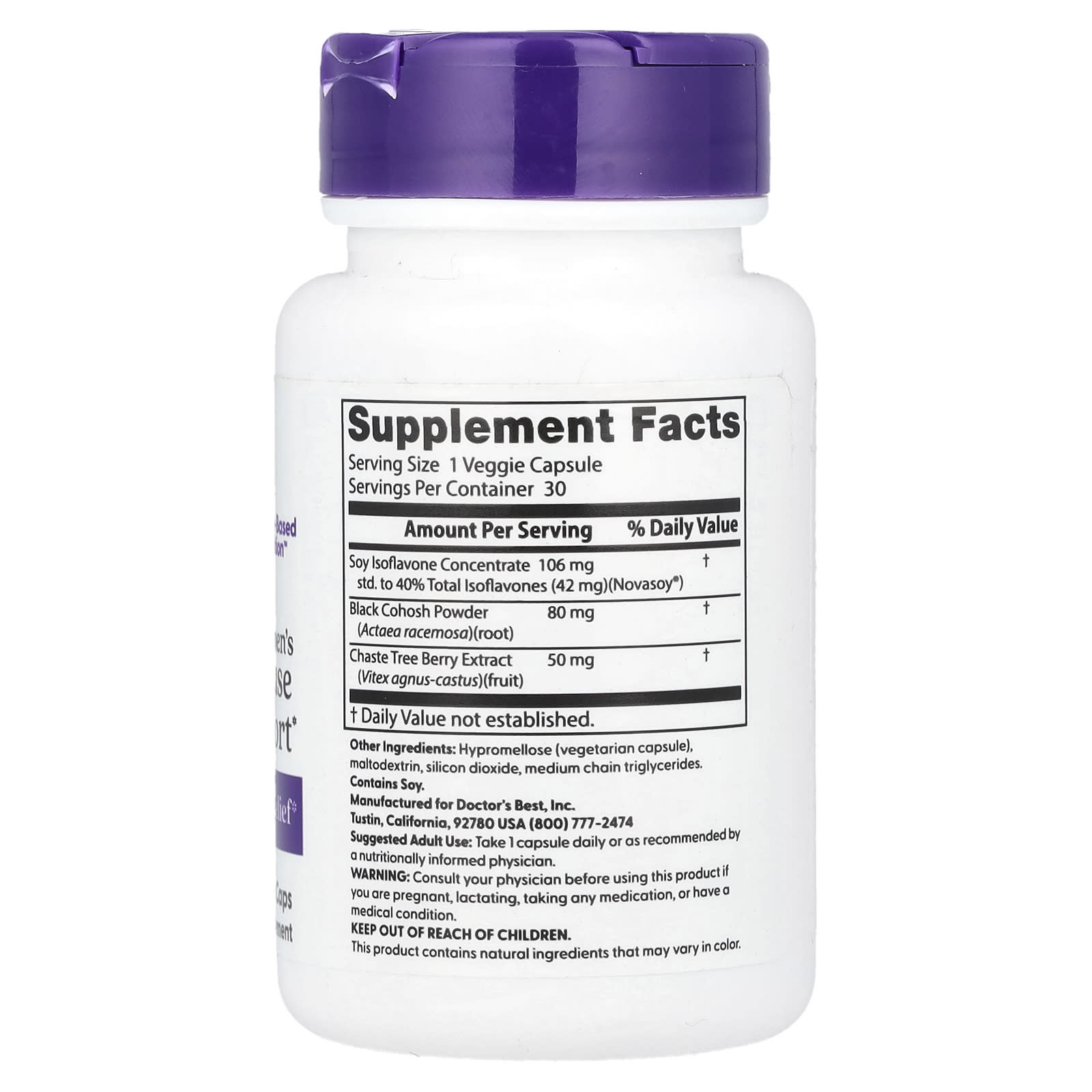 Специалисты Doctor's Best понимают, что вспышка жара может всколыхнуть женскую жизнь. Наша уникальная формула для менопаузы содержит Novasoy®, богатый источник изофлавонов сои для естественного облегчения приливов. Эта гармоничная смесь в сочетании с порошком черного кохоша и экстрактом плодов ягоды предназначена для облегчения перехода между подъемами и минимумами неожиданных изменений во время менопаузы.
