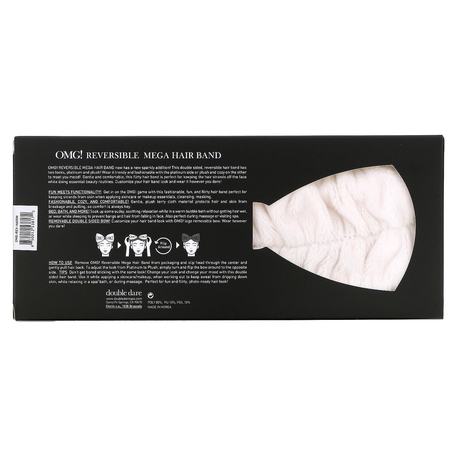 Удовольствие и функциональность! Присоединяйтесь к OMG! Эта модная, забавная и кокетливая повязка для волос идеально подходит для защиты волос при нанесении средств по уходу за кожей или макияжа, а также при очищении и маскировке.