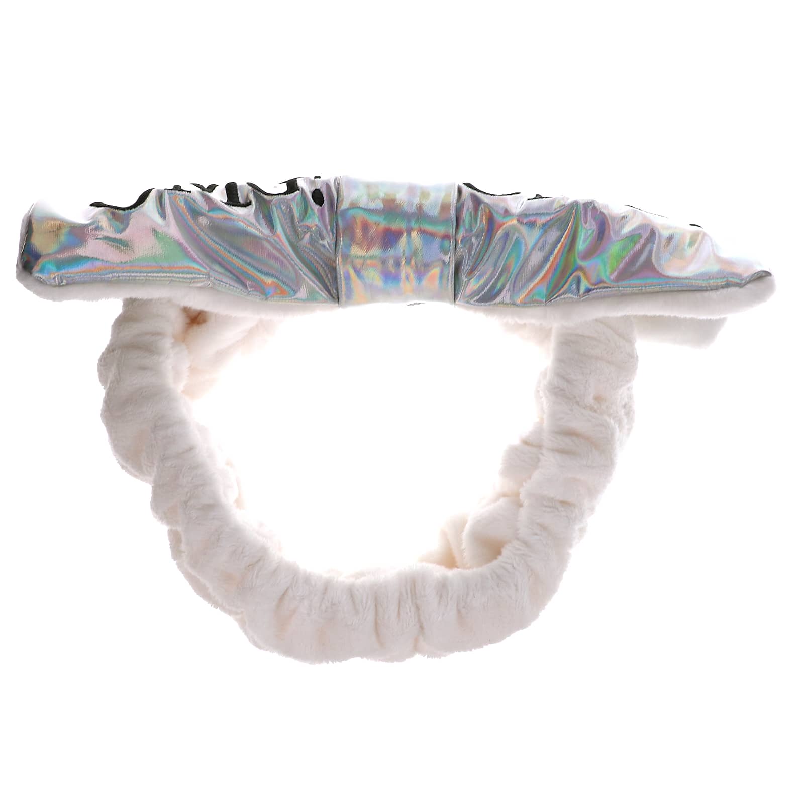 OMG! Двусторонняя повязка для волос Mega теперь имеет новое блестящее украшение! Эта двусторонняя двусторонняя резинка для волос имеет два вида: платиновый и плюшевый! Носите его стильно и с платиновой стороной, а с другой - с плюшевой и уютной тканью, чтобы соответствовать вашему настроению! Нежный и удобный, этот кокетливый ободок для волос идеально подходит для того, чтобы убрать пряди волос с лица во время основных косметических процедур. Придайте индивидуальный вид своей повязке для волос и носите ее, как хотите!