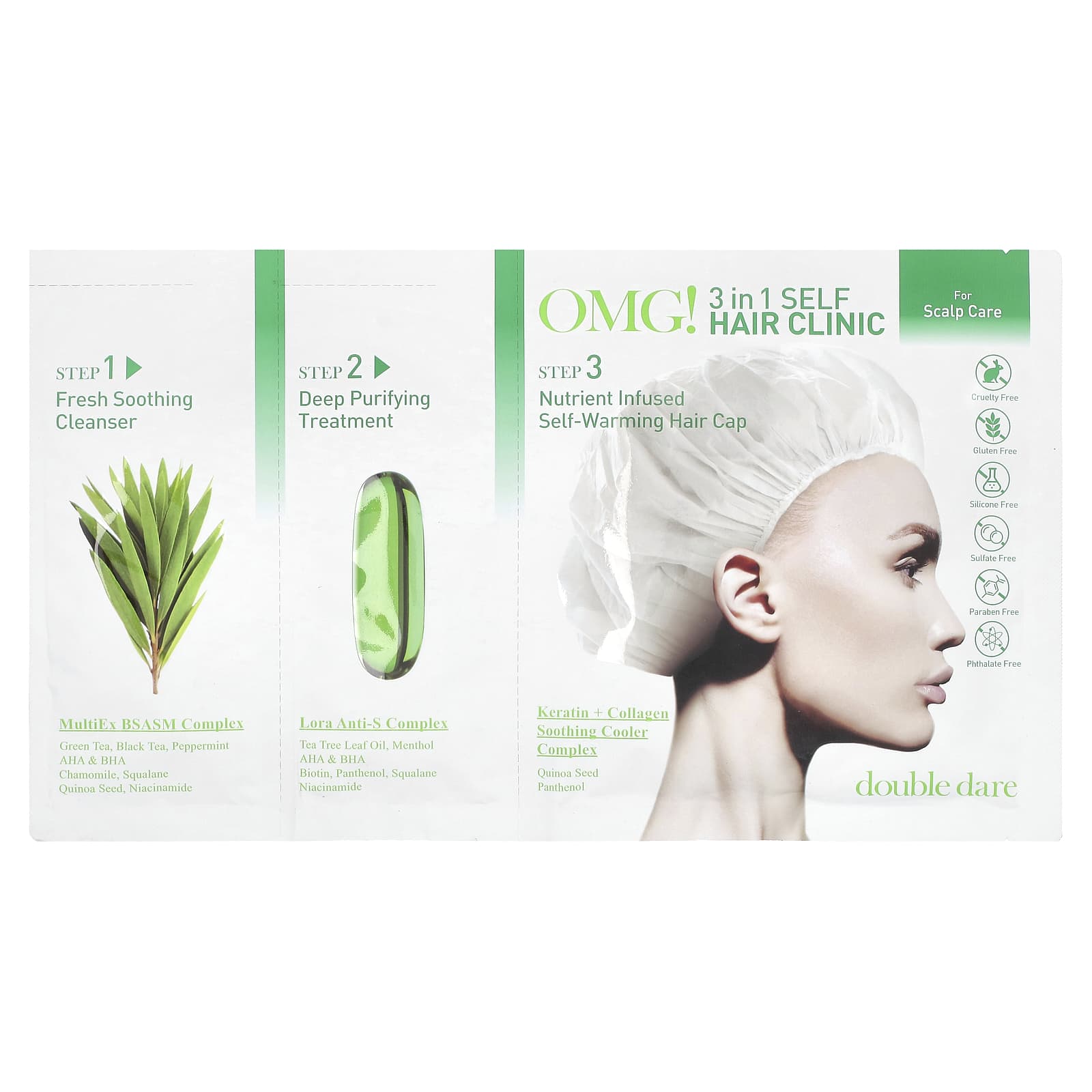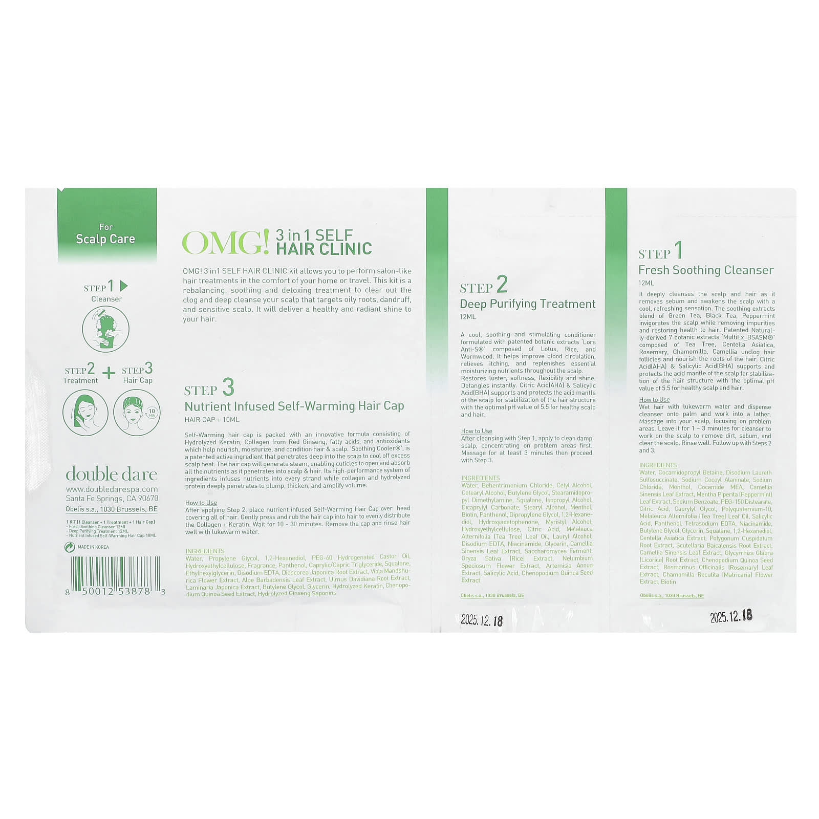OMG! Набор 3 в 1 Self Hair Clinic позволяет проводить процедуры по уходу за волосами, как в салоне, не выходя из дома или в дороге. Этот набор представляет собой восстанавливающее, успокаивающее и очищающее средство для устранения засоров и глубокого очищения кожи головы от жирных корней, перхоти и чувствительной кожи головы. Придаст вашим волосам здоровый и сияющий блеск.