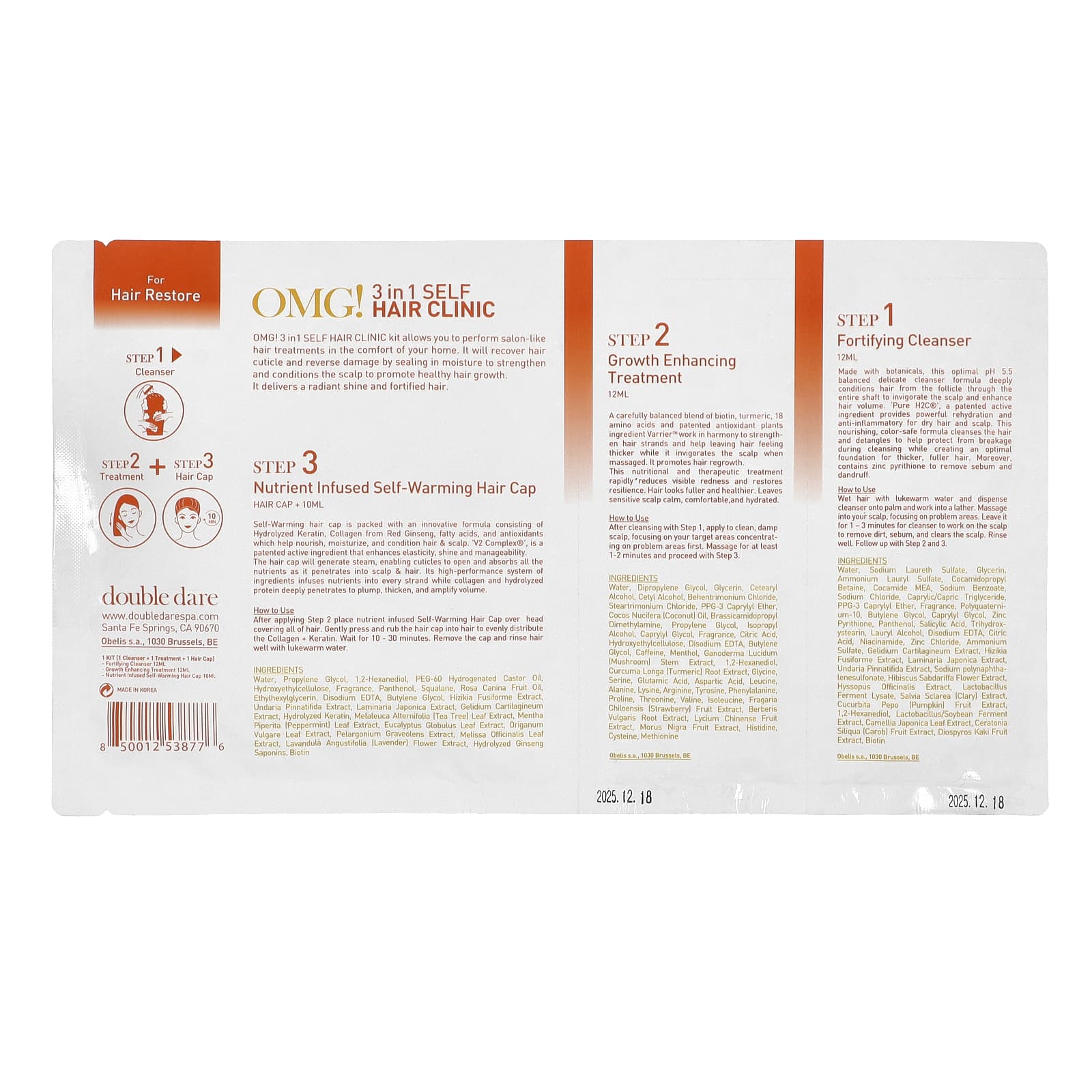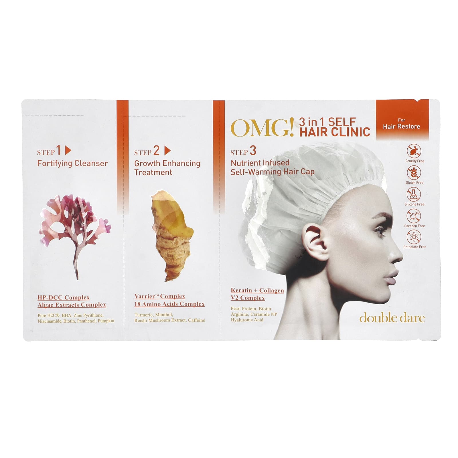 OMG! Набор 3 в 1 Self Hair Clinic позволяет проводить процедуры по уходу за волосами на профессиональном уровне, не выходя из дома. Он восстанавливает кутикулу волос и обращает вспять повреждения, удерживая влагу для укрепления и кондиционирования кожи головы, тем самым способствуя здоровому росту волос. Придает волосам сияние и укрепляет их.