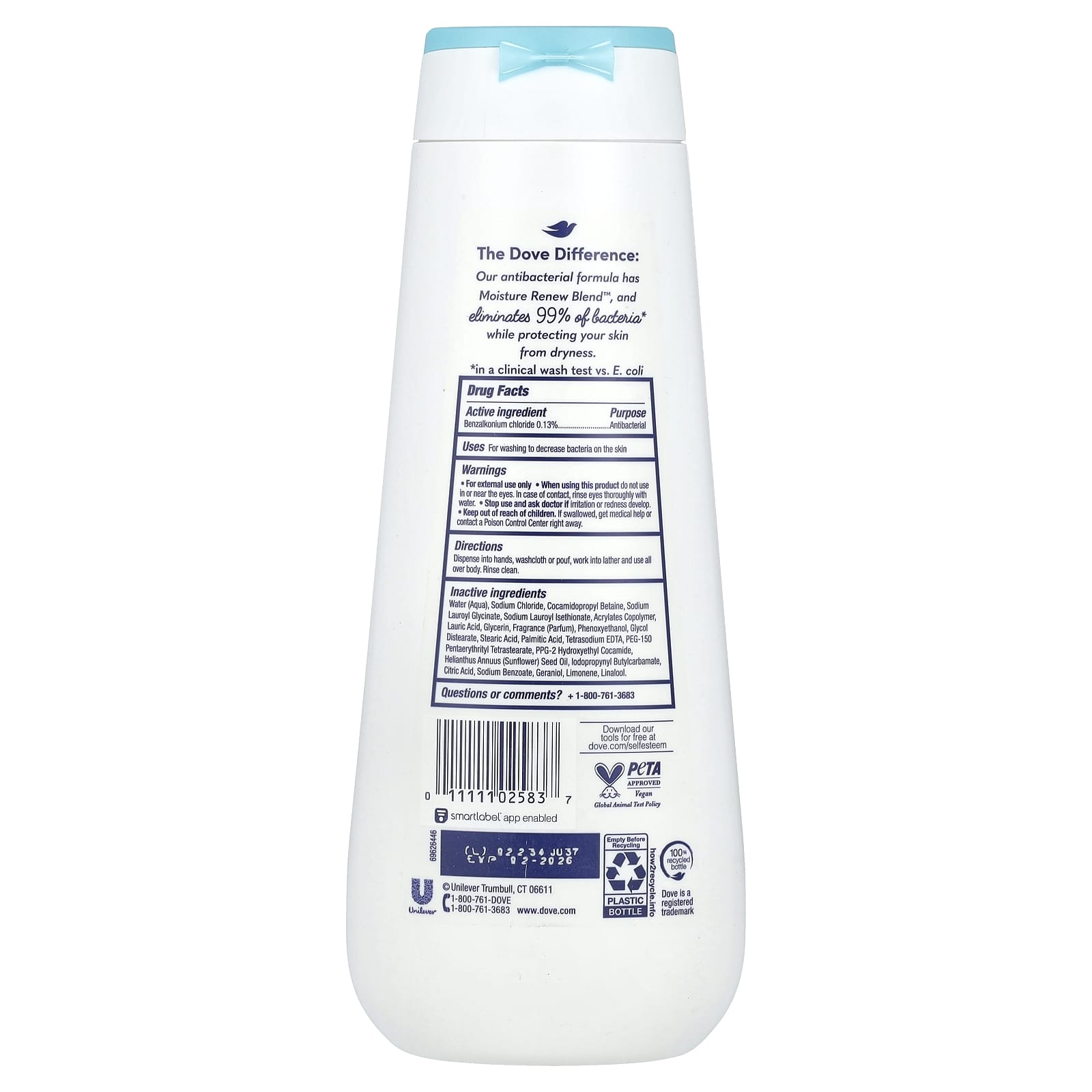 Наша антибактериальная формула содержит Moisture Renew Blend™ и устраняет 99% бактерий *, защищая кожу от сухости.