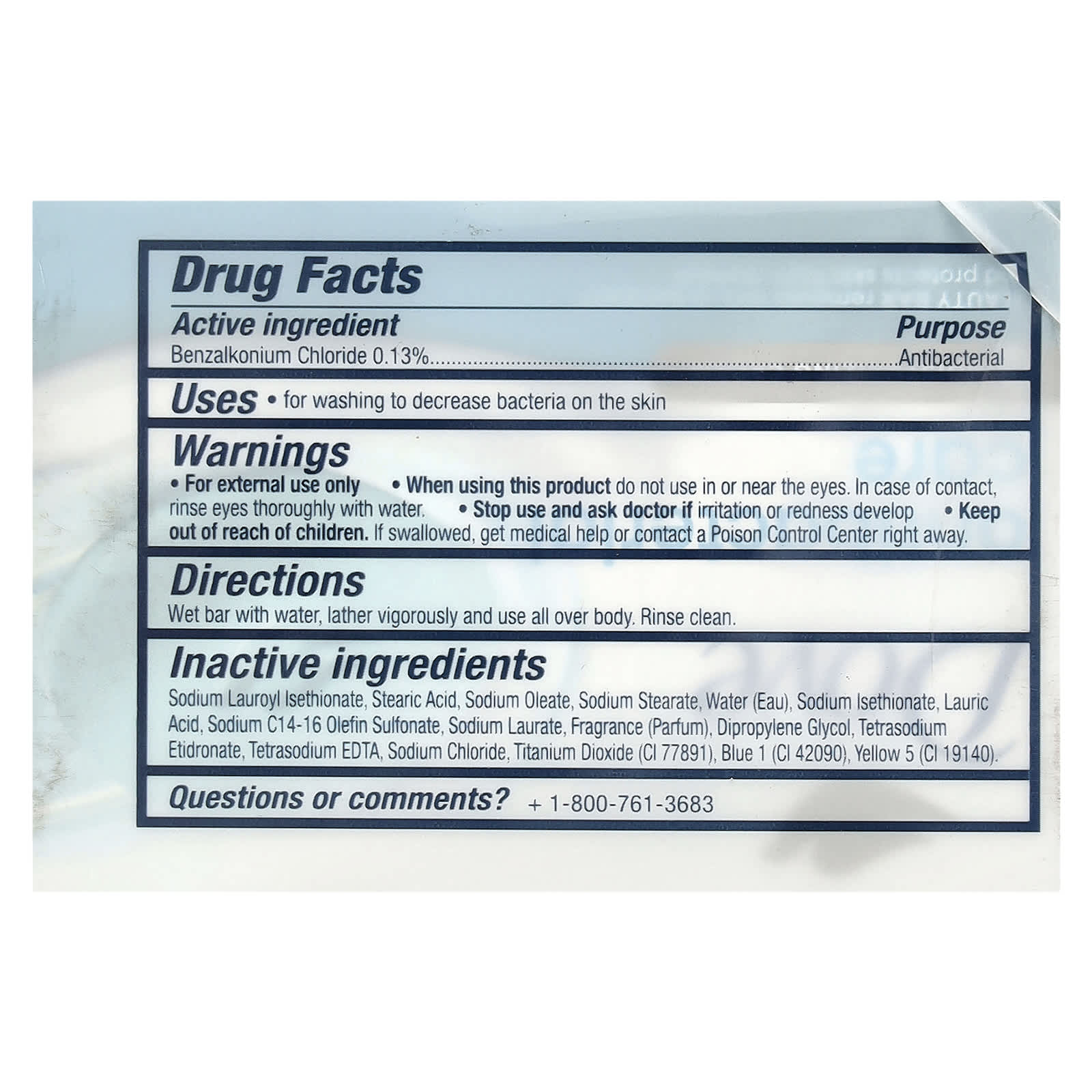 | Вспомогательные ингредиенты: Лауроилизетионат натрия, стеариновая кислота, олеат натрия, стеарат натрия, вода (вода), изетионат натрия, лауриновая кислота, C14-16 олефинсульфонат натрия, лаурат натрия, отдушка (парфюмерная композиция), дипропиленгликоль, хлорид натрия, этидронат тетранатрия, тетранатрий эдта , каолин *, диоксид титана *, синий 1 (CI 42090), желтый 5 (CI 19140). * Содержит один или несколько из этих ингредиентов. | |
