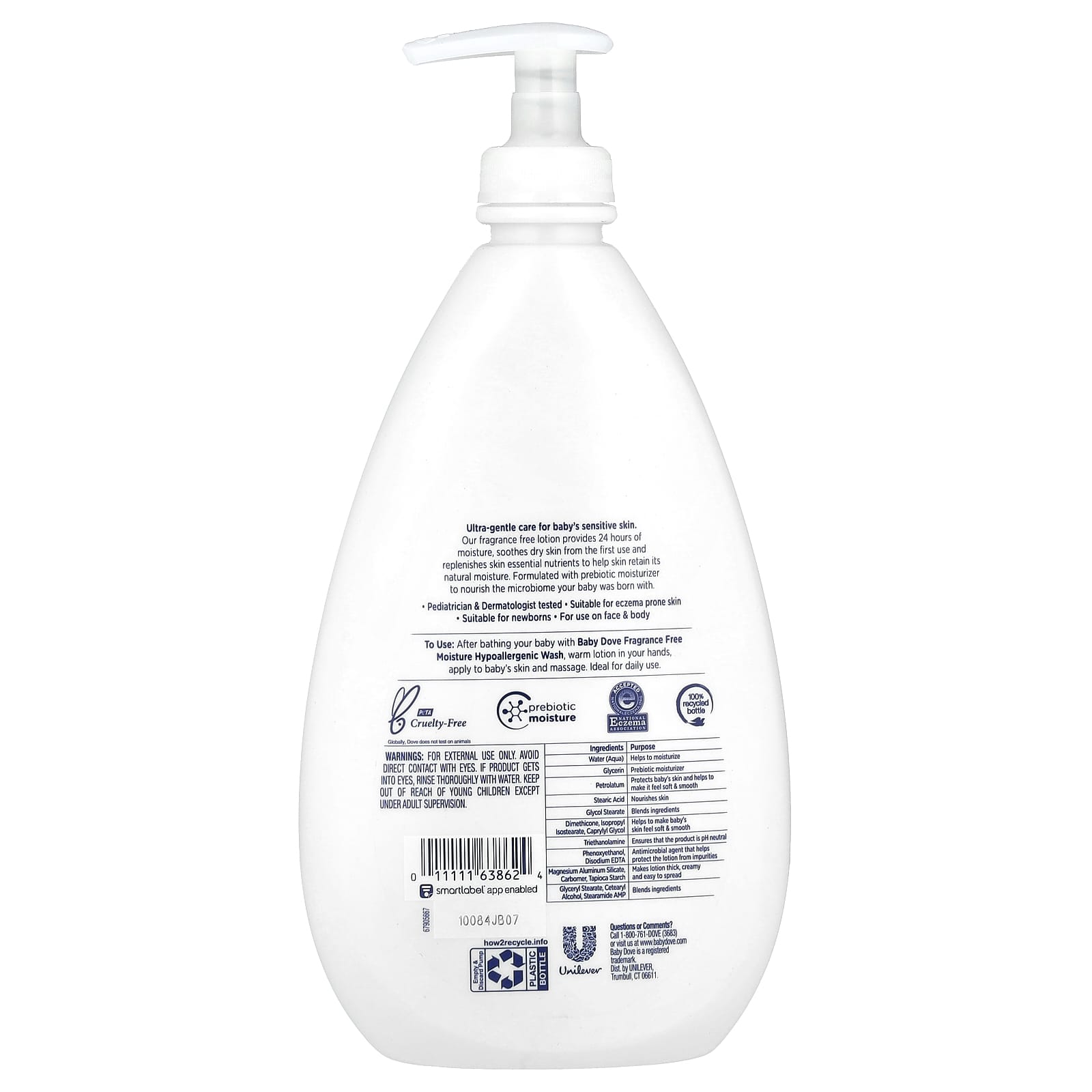 Вода (вода) (способствует увлажнению), глицерин (пребиотический увлажняющий крем), вазелин (защищает кожу ребенка и делает ее мягкой и гладкой), стеариновая кислота (питает кожу), стеарат гликоля (смесь ингредиентов), диметикон, изопропил, изостеарат, каприлил гликоль (делает кожу ребенка мягкой и гладкой), триэтаноламин (обеспечивает нейтральный уровень pH), феноксиэтанол, динатрия ЭДТ (антимикробное средство, которое помогает защитить лосьон от загрязнений), алюмосиликат магния, карбомер, тапиоковый крахмал (делает лосьон густым, кремовая и легко наносится), глицерил стеарат, цетеариловый спирт, стеарамид (смесь ингредиентов).