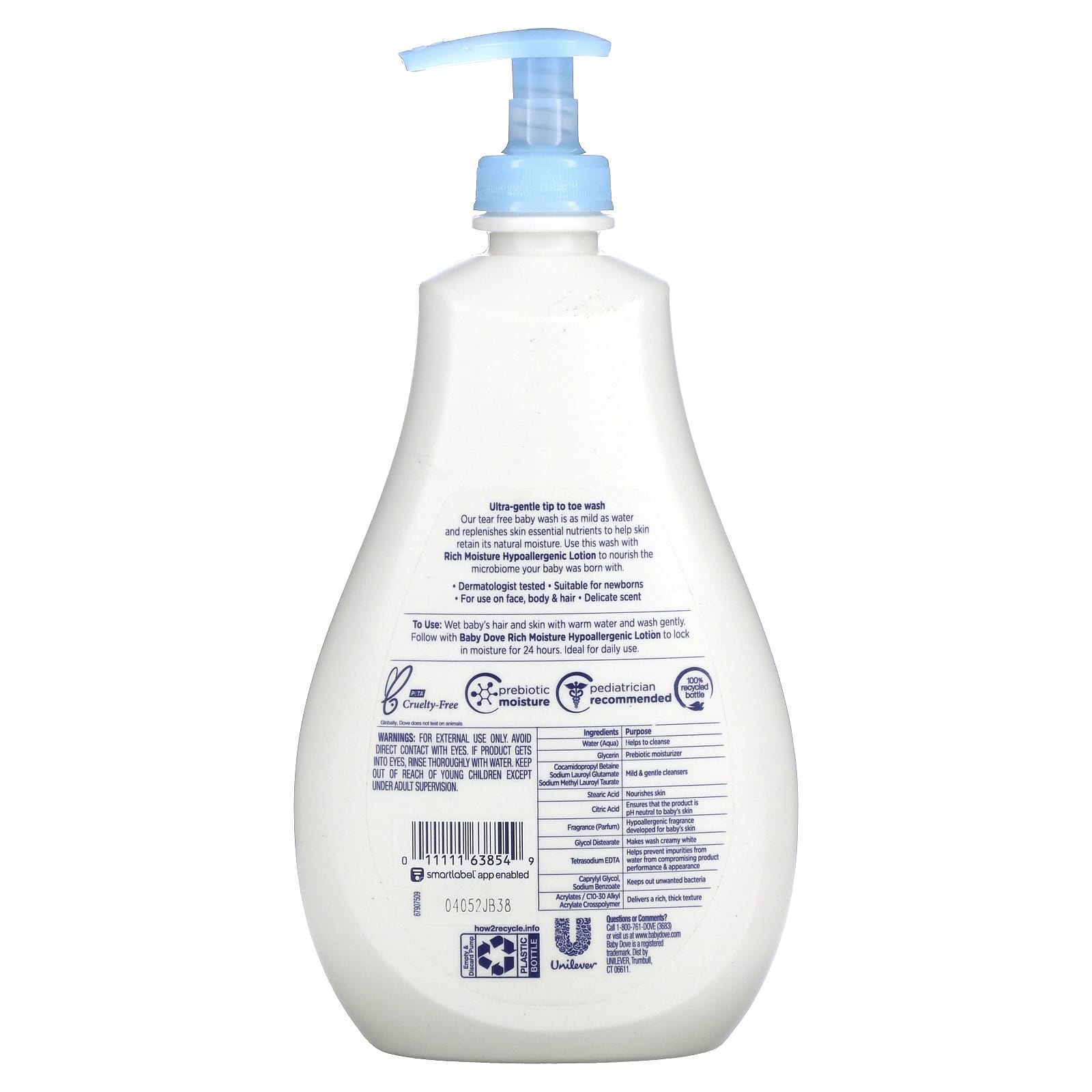 Смочите волосы и кожу ребенка теплой водой и аккуратно умойтесь. Затем нанесите гипоаллергенный лосьон Baby Dove для удержания влаги в течение 24 часов. Идеально подходит для ежедневного использования.