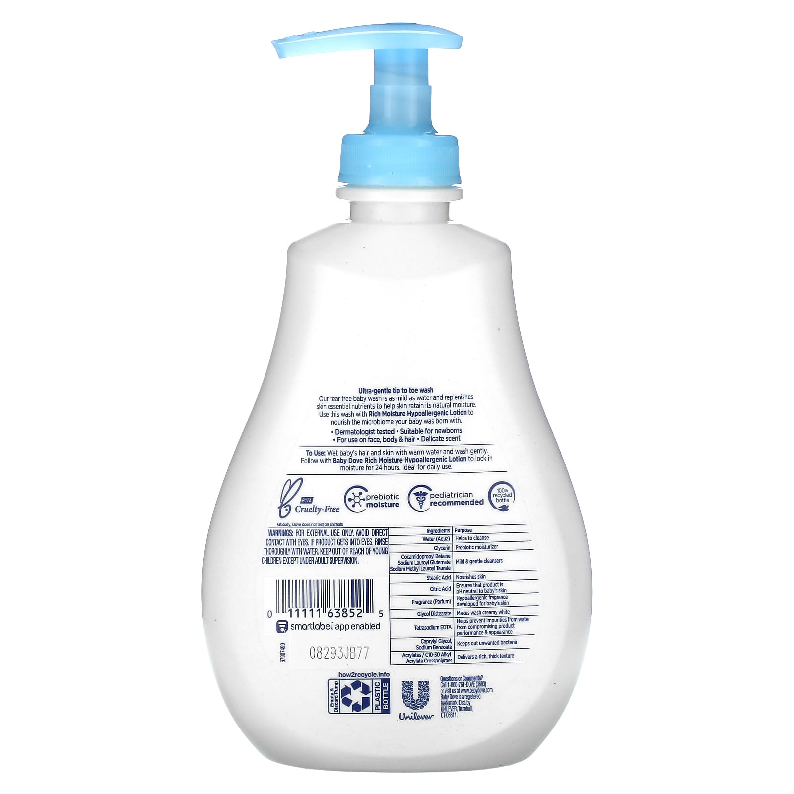 Смочите волосы и кожу ребенка теплой водой и аккуратно умойтесь. Затем нанесите гипоаллергенный лосьон Baby Dove, чтобы сохранить влагу в течение 24 часов. Подходит для ежедневного применения.