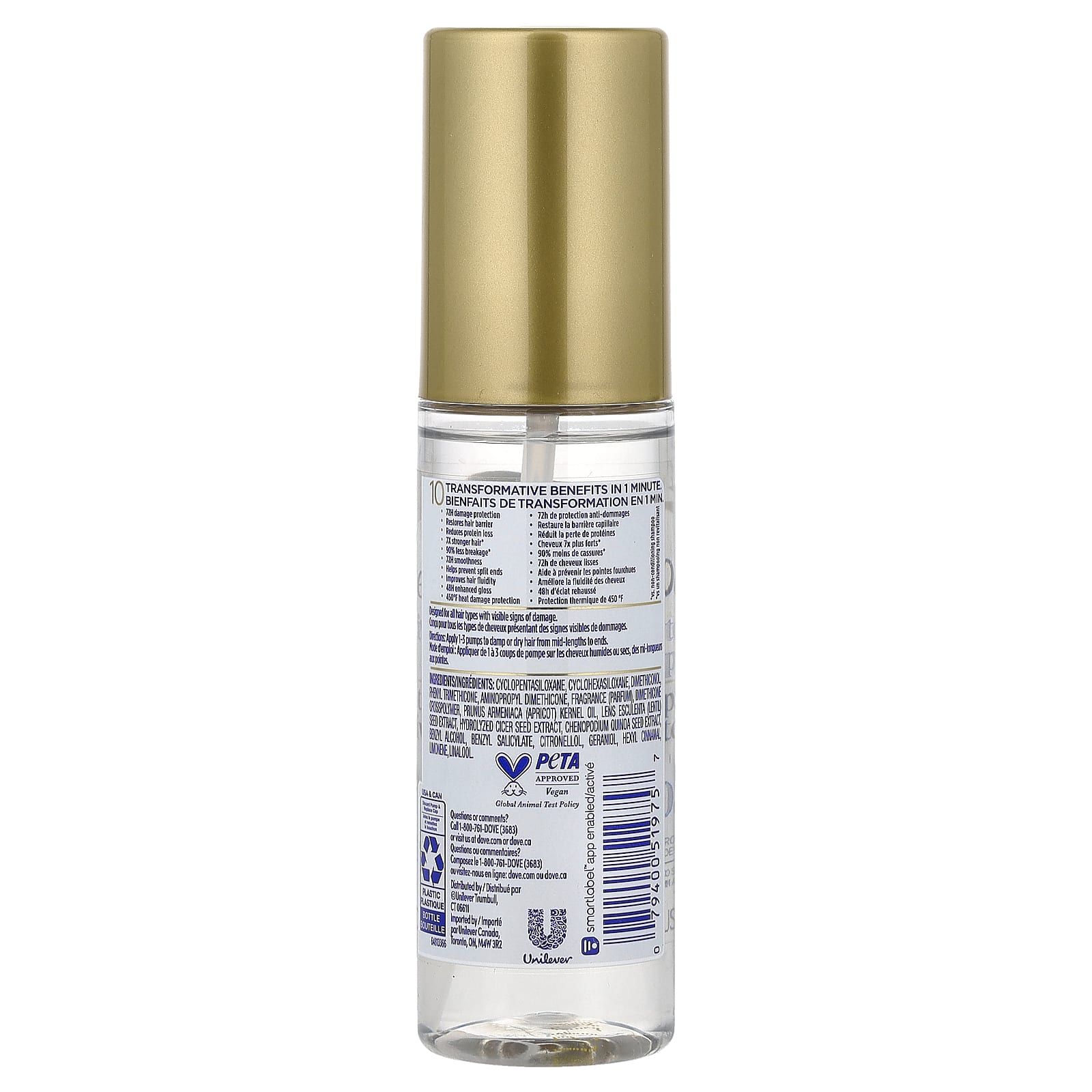 циклопентасилоксан, циклогексасилоксан, диметиконол фенилтриметикон, аминопропил диметикон, отдушка (парфюмерная композиция), диметикон кроссполимер, масло из косточек абрикоса (Prunus armeniaca), экстракт семян чечевицы (Lens esculenta), гидролизованный экстракт семян авокадо, экстракт киноа (Chenopodium quinoa), бензиловый спирт, бензилсалицилат, цитронеллола, гераниол, гексил циннамал, лимонен, линалоол.