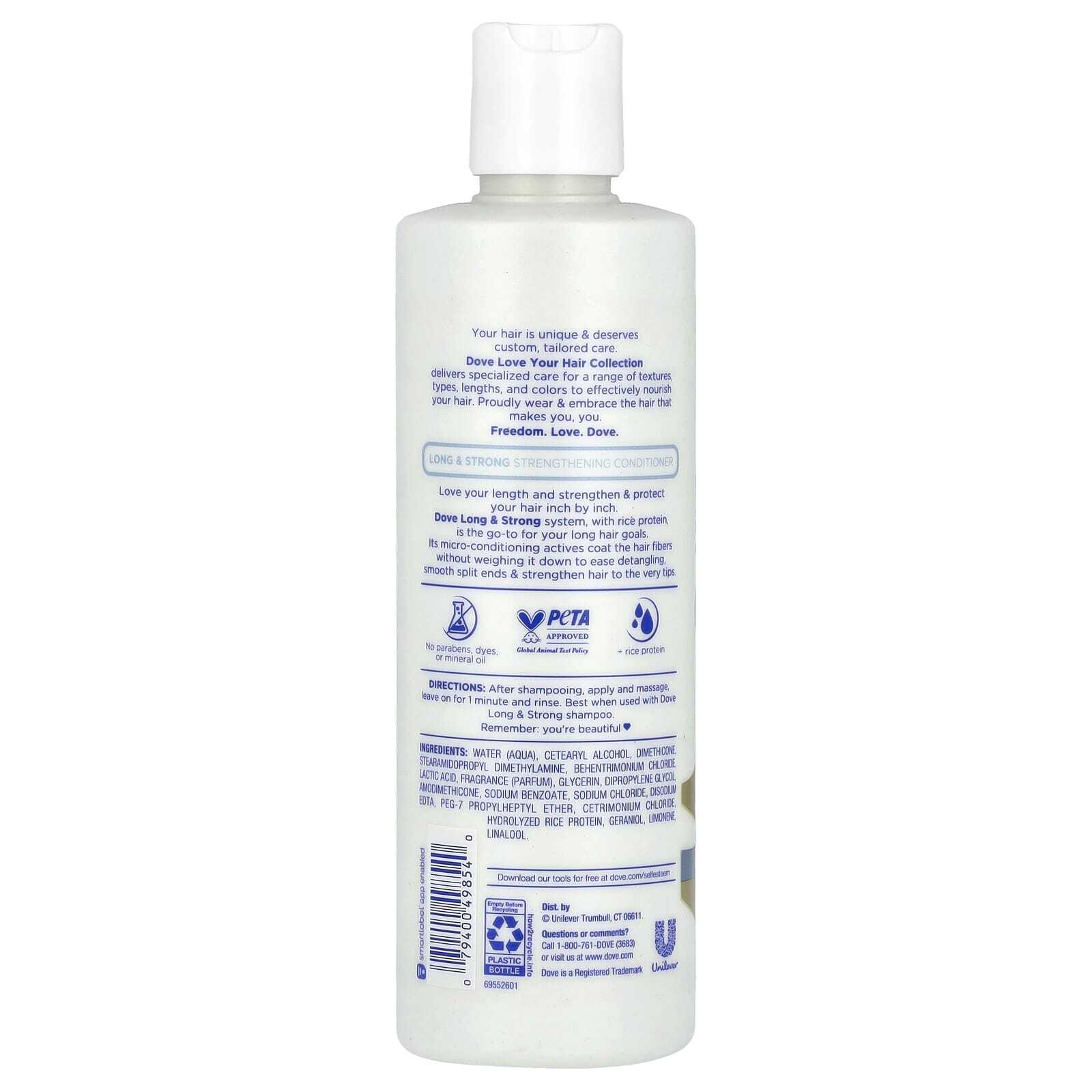 Любите свою длину, укрепляйте и защищайте свои волосы дюйм за дюймом. Система Dove Long & Strong с рисовым протеином - идеальное средство для длинных волос. Его микрокондиционеры покрывают волокна волос, не утяжеляя их, чтобы облегчить расчесывание, сгладить секущиеся кончики и укрепить волосы до самых кончиков.