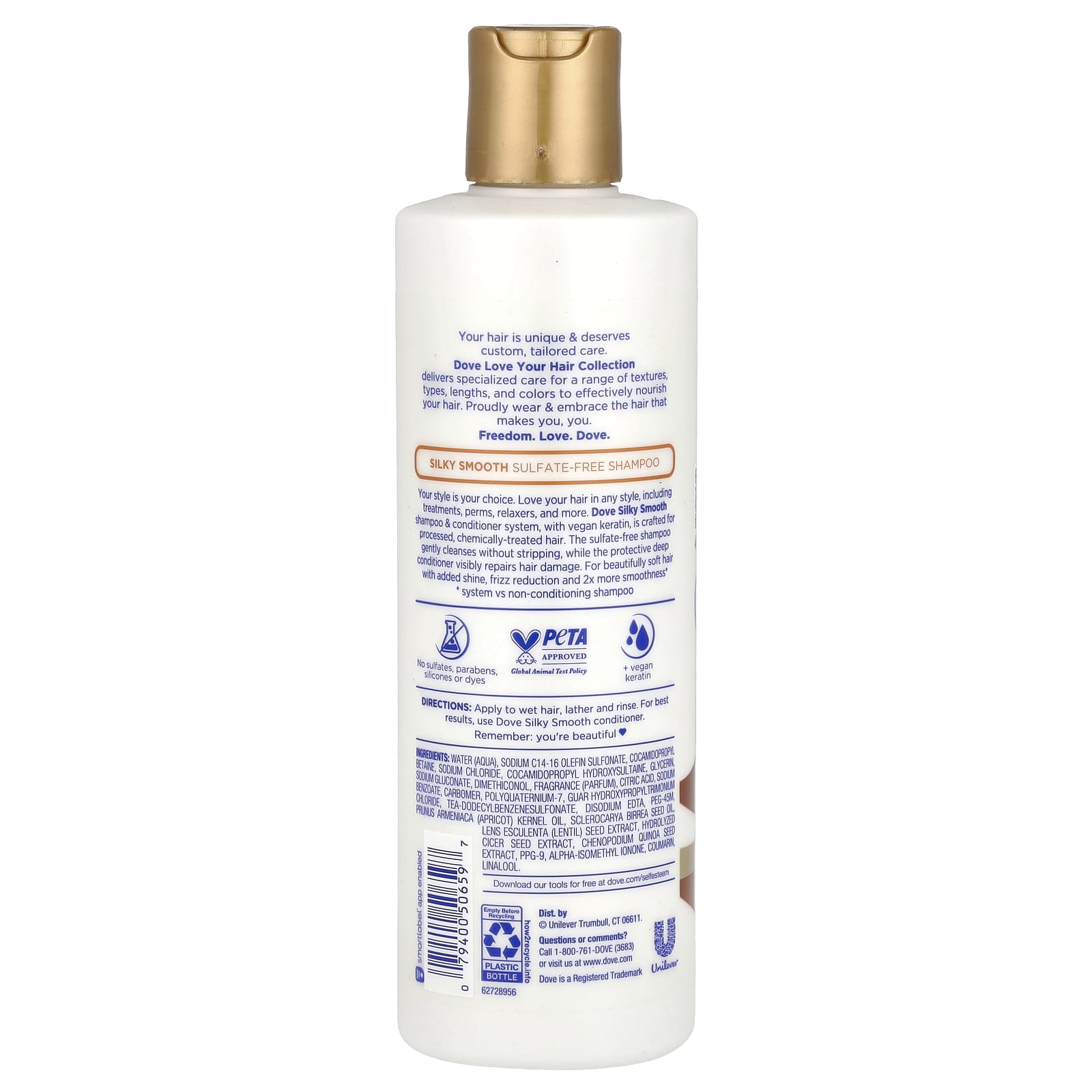 Ваш стиль - ваш выбор. Любите ваши волосы с любой укладкой, включая косметические средства, химическую завивку, расслабляющие средства и многое другое. Система шампуня и кондиционера Dove Silky Smooth с веганским кератином создана для обработанных химически обработанных волос. Шампунь без сульфатов мягко очищает волосы, не повреждая их, а защитный кондиционер глубокого действия заметно восстанавливает поврежденные волосы. Для мягких волос, придания им блеска, уменьшения пушения и увеличения гладкости в 2 раза *.
