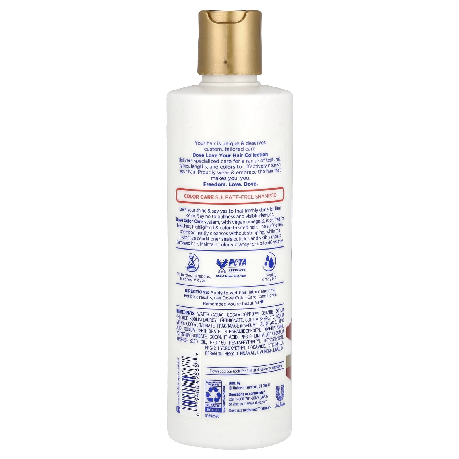 Нанесите на влажные волосы, вспеньте и смойте. Для достижения наилучших результатов используйте кондиционер Dove Color Care. Помните: вы красивы.