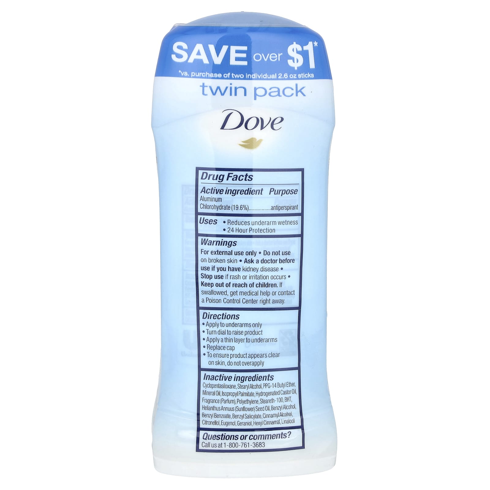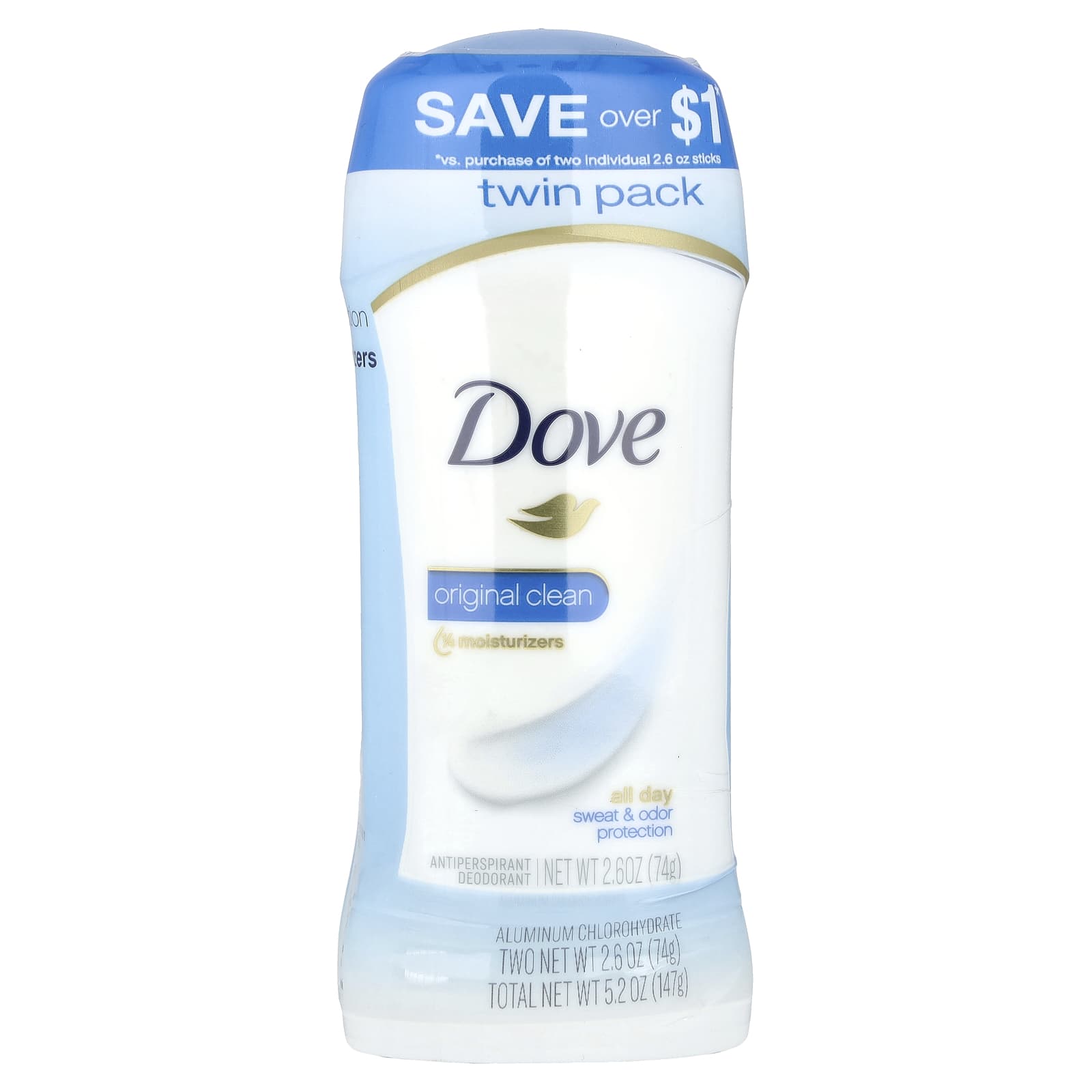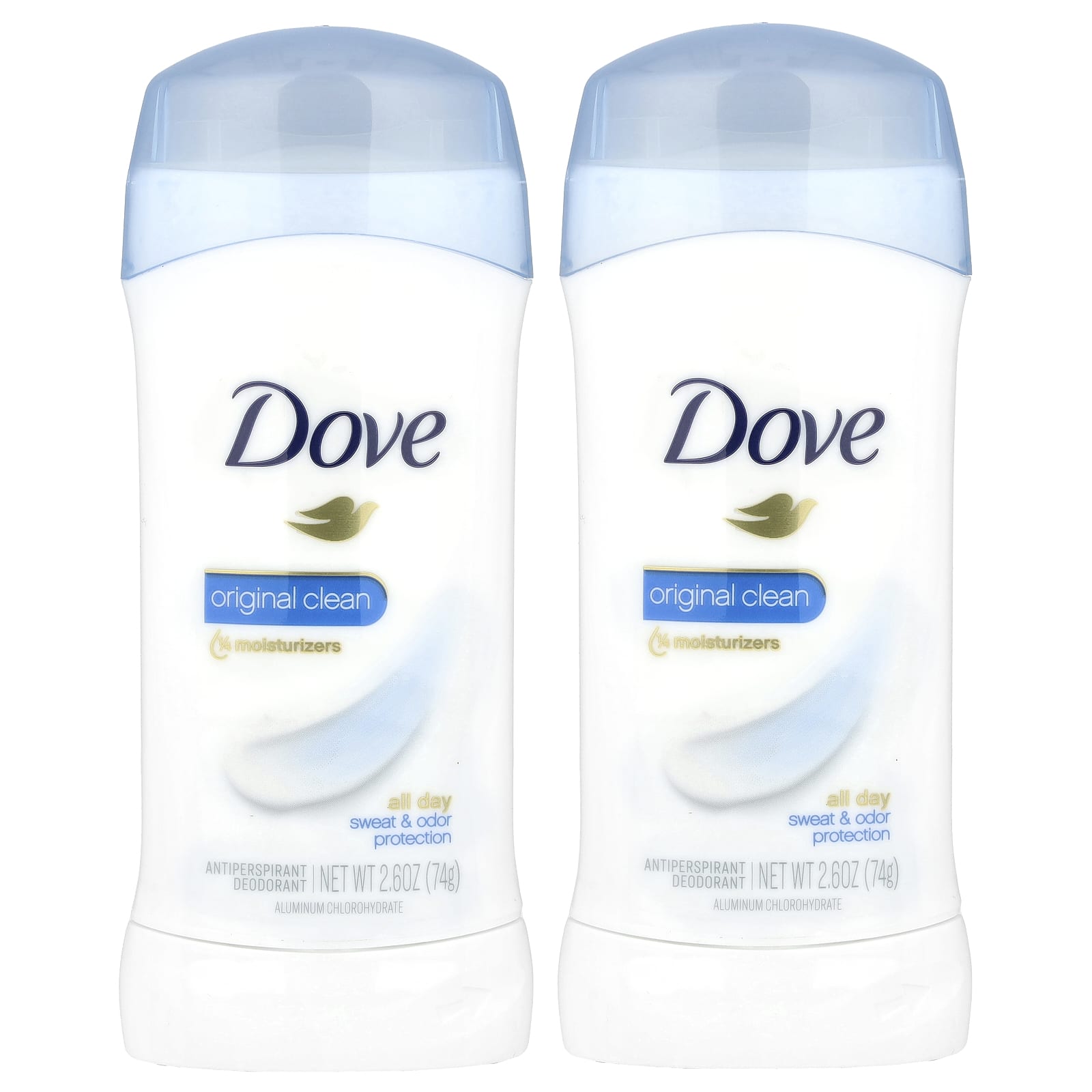 Dove, Дезодорант-антиперспирант, Original Clean, 2 упаковки по 74 г (2,6 унции)
