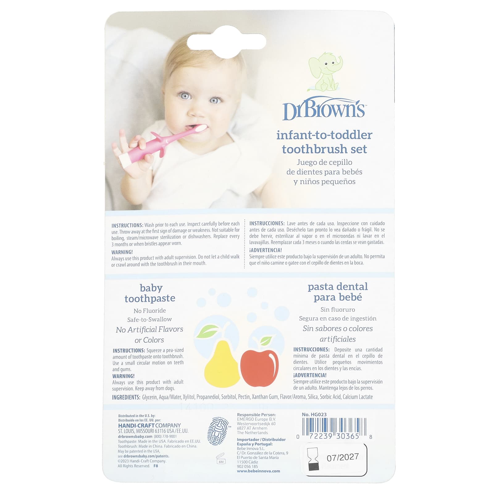 Установите правильные привычки в отношении гигиены полости рта вместе с ребенком. Brown's ™, зубная щетка со слоном для малышей. Зубная щетка идеально подходит для маленького рта и мизинца, помогая ребенку развить навыки, необходимые для самостоятельной чистки зубов.