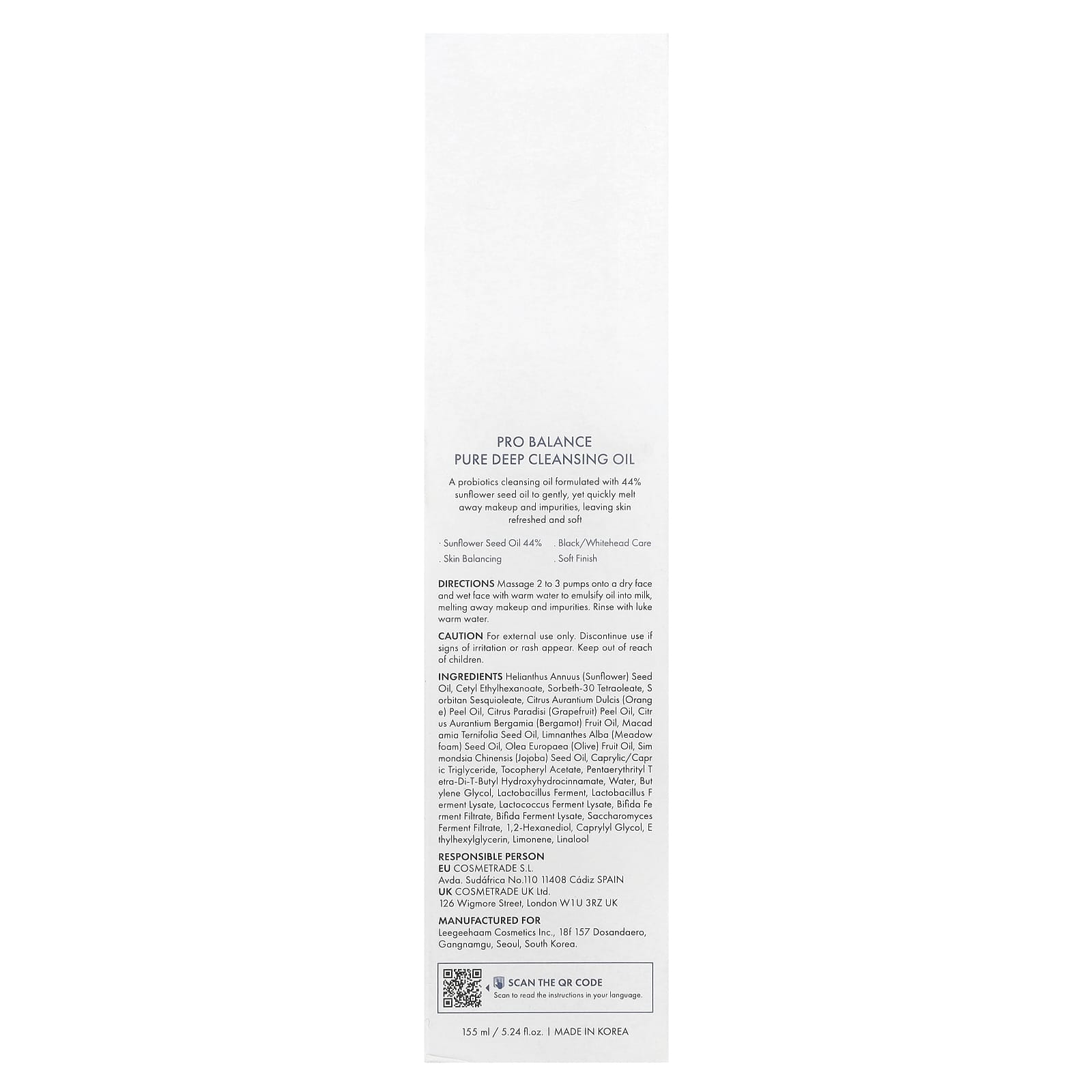Очищающее масло с пробиотиками на 44% состоит из подсолнечного масла, которое мягко, но быстро удаляет макияж и загрязнения, делая кожу свежей и мягкой.