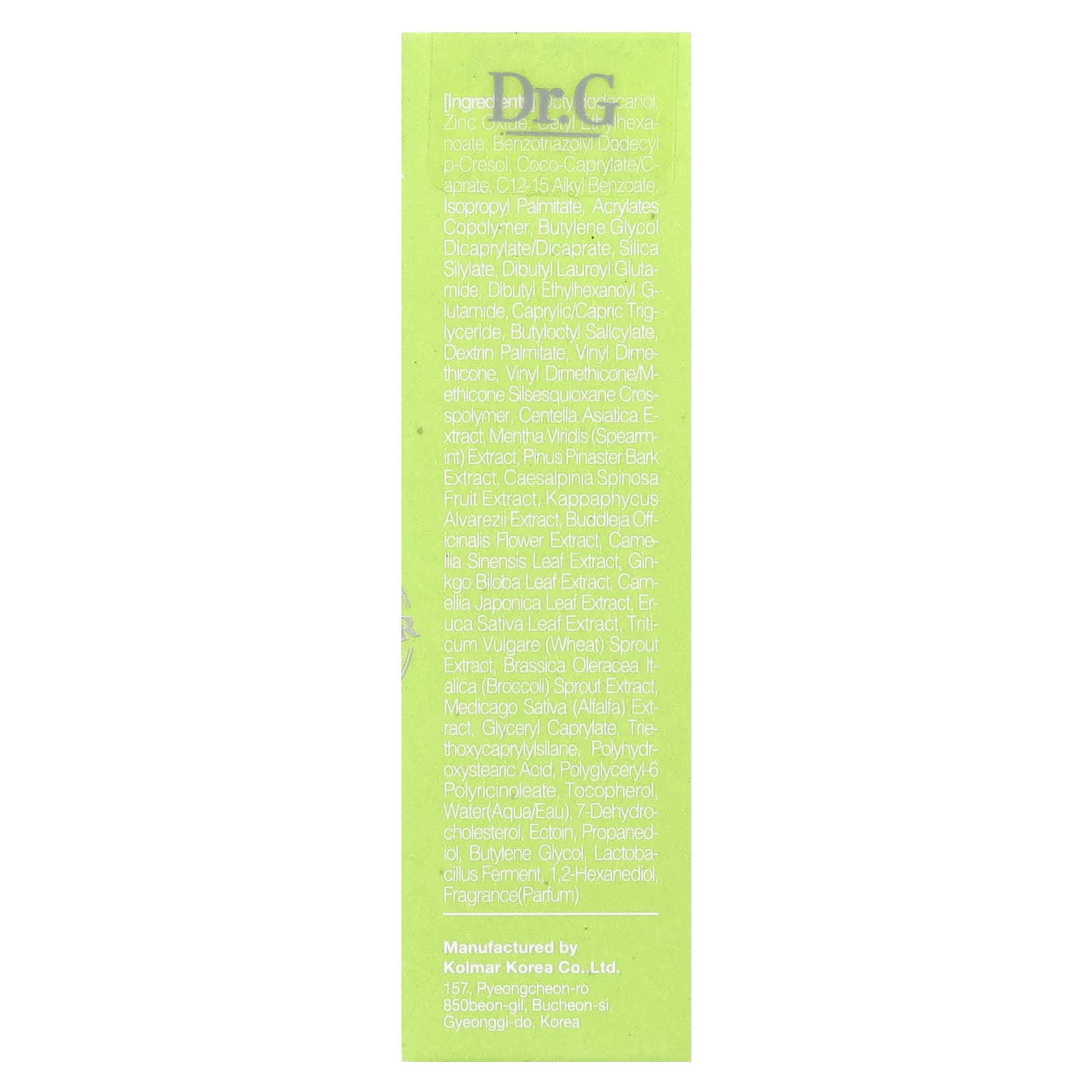 Октилдодеканол, оксид цинка, цетилэтилгексаноат, бензотриазолил додецил п-крезол, коко-каприлат/капрат, c12-15 алкил бензоат изопропилпальмитат, сополимер акрилатов, бутиленгликоль дикаприлат/дикапрат, силилат диоксида кремния, дибутил лауроил глутамид, дибутил этилгексаноил глутамид, каприловый/каприновый триглицерид, бутилоктилсалицилат, декстрин пальмитат, винилдиметикон, винил диметикон/метикон силсесквиоксан кроссполимер, экстракт готу колы (Centella asiatica), экстракт мяты колосистой (Mentha viridis), экстракт коры сосны приморской (Pinus pinaster), экстракт плодов тары (Caesalpinia spinosa), экстракт красной водоросли (Kappaphycus alvarezii), экстракт цветков буддлеи лекарственной (buddleja officinalis), экстракт листьев зеленого чая (Camellia sinensis), экстракт листьев гинкго билоба (Ginkgo biloba), экстракт листьев камелии японской (Camellia japonica), экстракт листьев эруки (Eruca sativa), экстракт ростков пшеницы (Triticum vulgare), экстракт брокколи (Brassica oleracea italica), экстракт люцерны (Medicago sativa), глицерил каприлат, триэтоксикаприлилсилан, полигидроксистеариновая кислота, полиглицерил-6 полирицинолеат, токоферол, вода (aqua/eau), 7-дегидрохолестерин, эктоин, пропандиол, бутиленгликоль, фермент лактобактерий (Lactobacillus), 1,2-гександиол, отдушка (парфюмерная композиция).