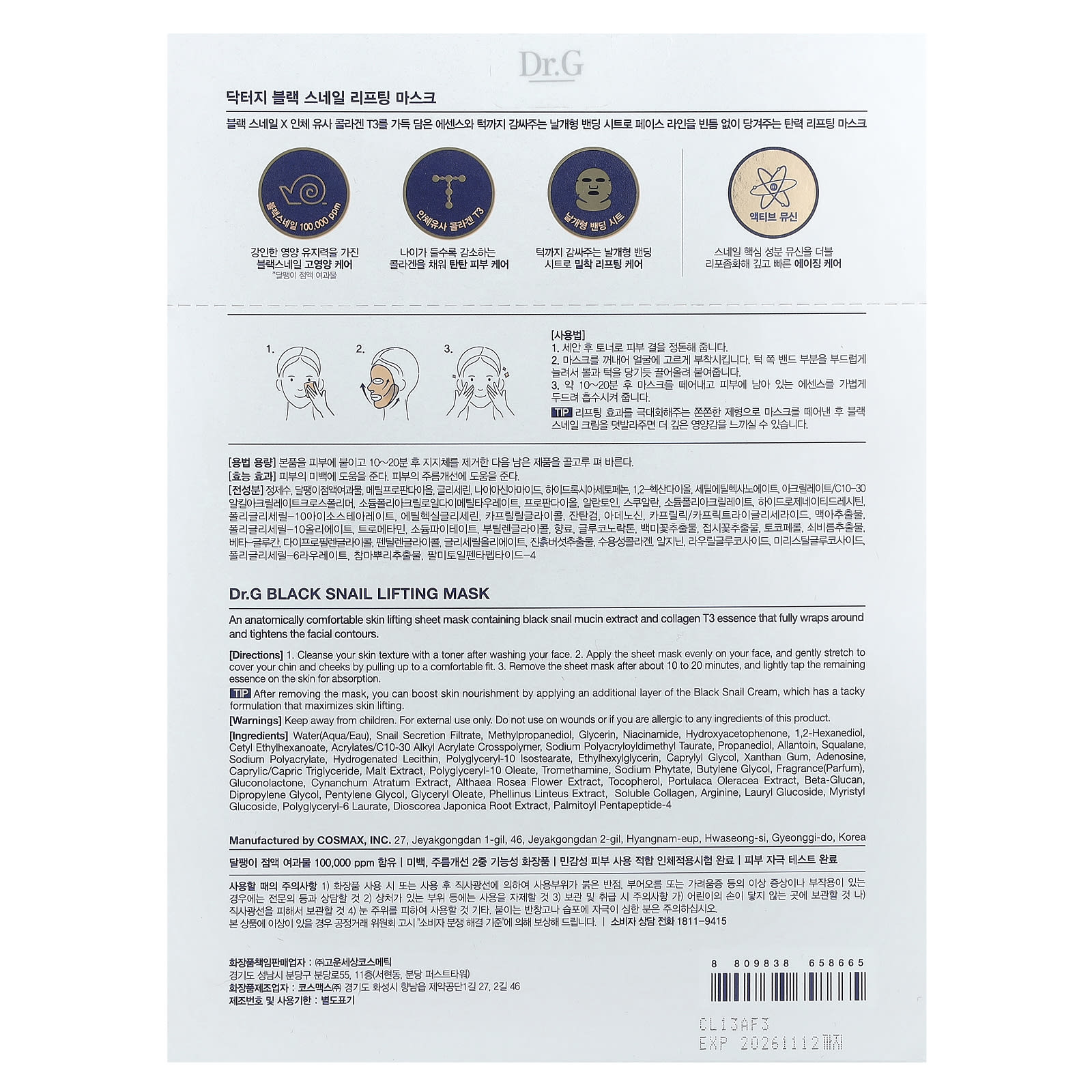 Анатомически удобная тканевая маска для подтяжки кожи содержит муцин черной улитки и эссенцию коллагена T3, которая полностью обволакивает и подтягивает контуры лица.