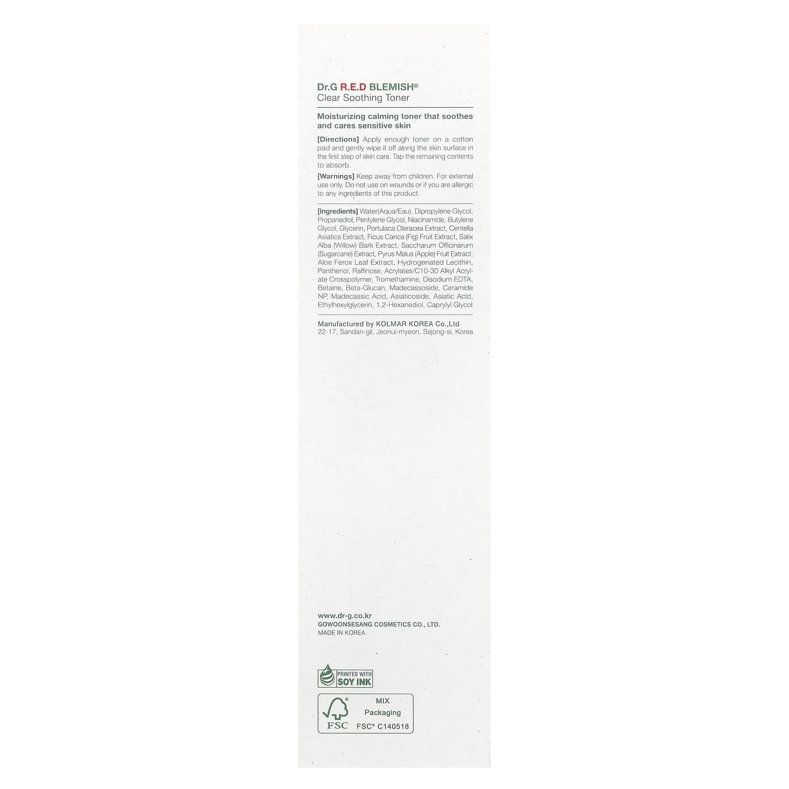 Вода, дипропиленгликоль, пропандиол, пентилен гликоль, никотинамид, бутиленгликоль, глицерин, экстракт портулака огородного (Portulaca oleracea), экстракт готу колы (Centella asiatica), экстракт плодов инжира (Ficus carica), экстракт коры ивы (Salix alba), экстракт сахарного тростника (Saccharum officinarum), экстракт яблока (Pyrus malus), экстракт листьев алоэ колючего (Aloe ferox), гидрогенизированный лецитин, пантенол, рафиноза, акрилат/c10-30 алкил акрилат кроссполимер, трометамин, двунатриевая ЭДТК, бетаин, бета-глюкан, мадекассосид, керамид NP, мадекассовая кислота, азиатикозид, азиатиковая кислота, этилгексилглицерин, 1,2-гександиол, каприлилгликоль.