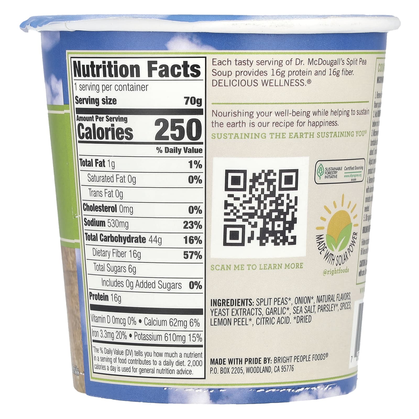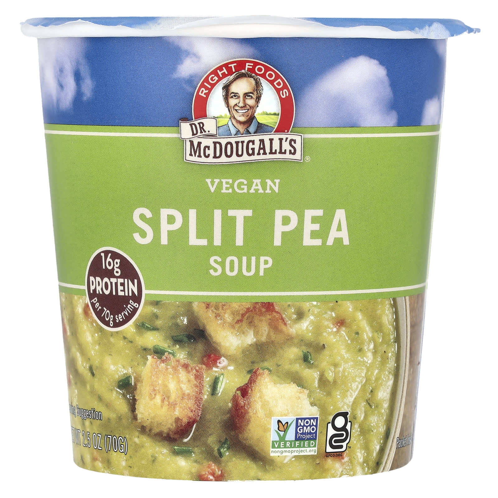 Каждая вкусная порция Dr. Гороховый суп McDougall содержит 16 г белка и 16 г клетчатки. Delicious Wellness.®