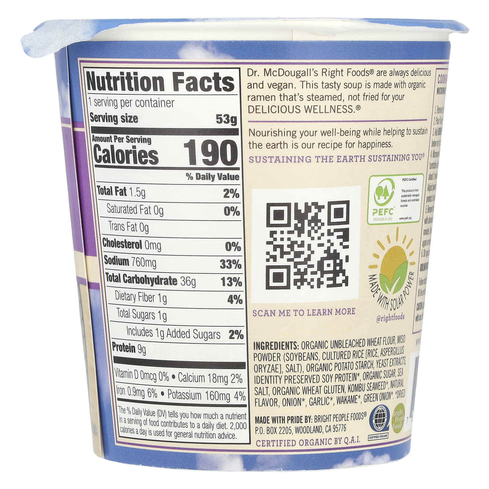 Цельнопищевой магний McDougall's Right Foods® всегда вкусные и веганские. Этот вкусный суп готовится из органического рамена, приготовленного на пару, а не из жареного для вашего Delicious Wellness®.