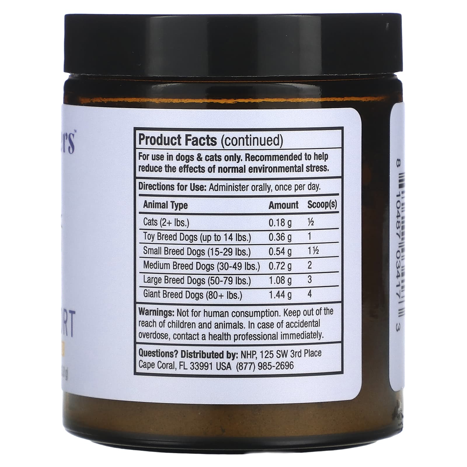 Если состояние животного ухудшается или не меняется в лучшую сторону, необходимо прекратить прием продукта и обратиться к ветеринару. Безопасность использования для беременных и предназначенных для разведения животных не доказана. Не используйте эту добавку, если ваш питомец принимает ингибиторы МАО или седативные препараты.