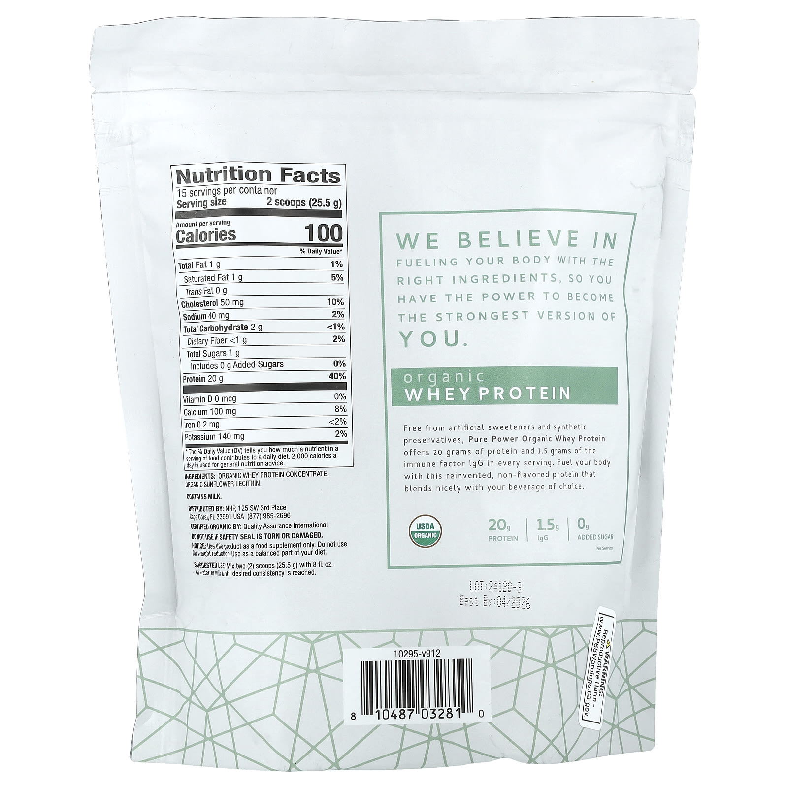 Не содержащий искусственных подсластителей и синтетических консервантов, Pure Power Organic Whey Protein содержит 20 граммов протеина и 1,5 грамма иммунного фактора IgG в каждой порции. Зарядите свой организм этим обновленным протеином без добавок, который прекрасно сочетается с любимым напитком.