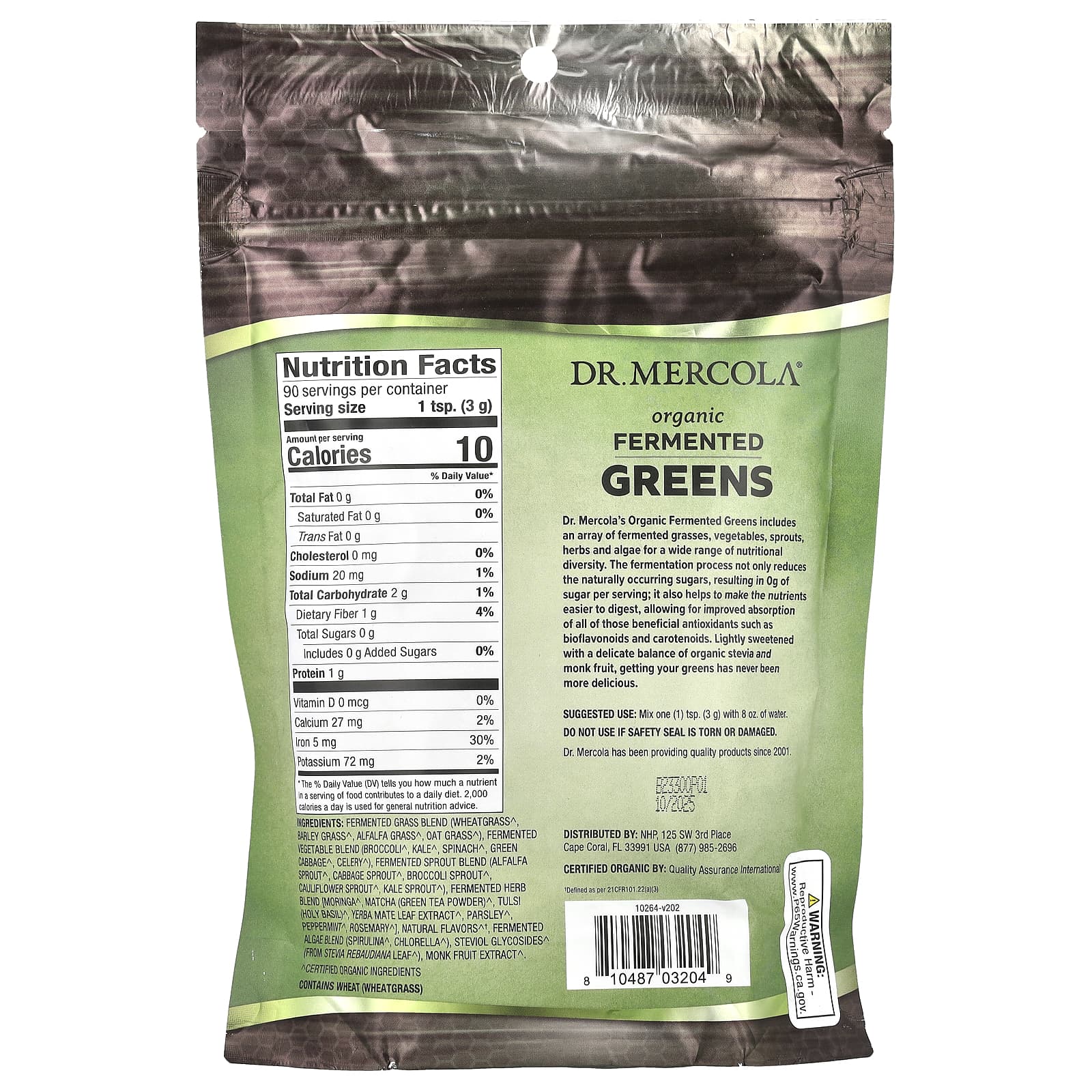 Органическая ферментированная зелень Dr. Mercola включает в себя множество ферментированных растений, овощей, ростков, трав и водорослей, которые содержат широкий спектр питательных веществ. Процесс ферментации не только снижает количество встречающегося в природе сахара (в результате чего каждая порция не содержит ни грамма сахара), но и помогает облегчить переваривание питательных веществ, улучшая усвоение всех полезных антиоксидантов, таких как биофлавоноиды и каротиноиды. Слегка подслащённая точно сбалансированной смесью органической стевии и архата, зелень ещё никогда не была такой вкусной.