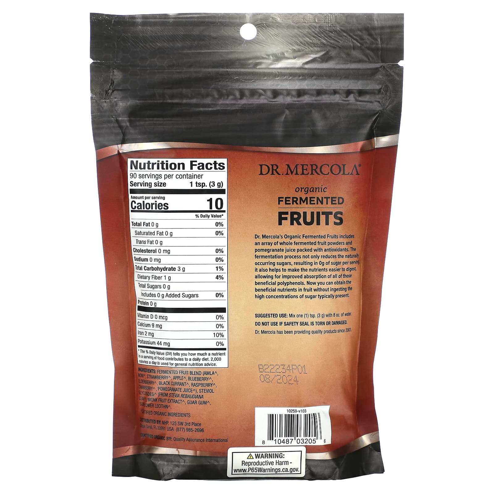 Dr. В состав органических ферментированных фруктов Mercola входят порошки из цельных ферментированных фруктов и гранатовый сок, богатый антиоксидантами. Процесс ферментации не только снижает количество встречающихся в природе сахаров, в результате чего получается 0 г сахара на порцию, но и облегчает переваривание питательных веществ, улучшая усвоение всех этих полезных полифенолов. Теперь вы можете получать полезные питательные вещества из фруктов, не употребляя в пищу обычно высокие концентрации сахара.
