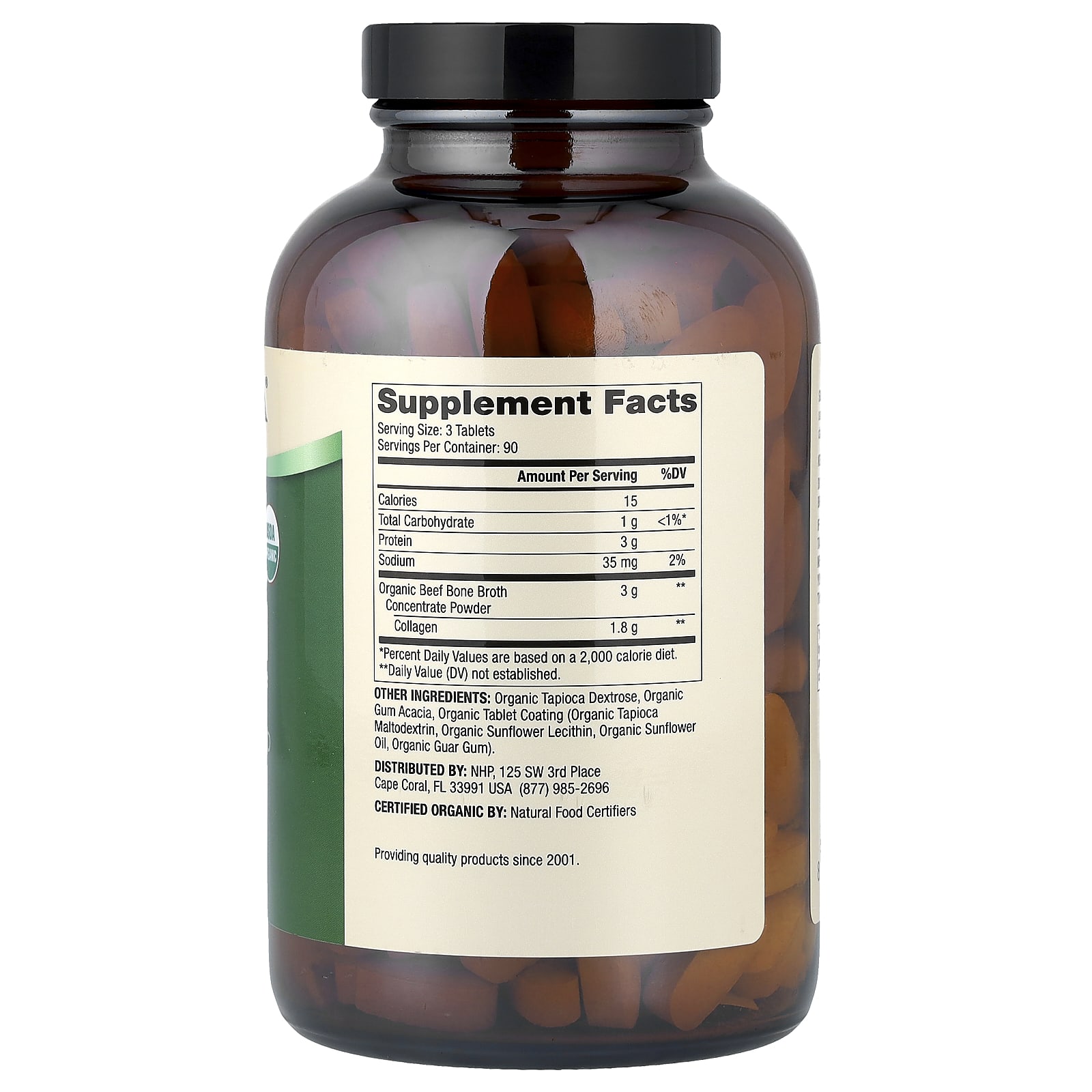 Каждая таблетка органического коллагена изготовлена из самого лучшего сертифицированного порошка из концентрата органического говяжьего костного бульона, полученного от коров травяного откорма, выращенных в США органическим способом, без добавления гормонов и антибиотиков в их рацион.