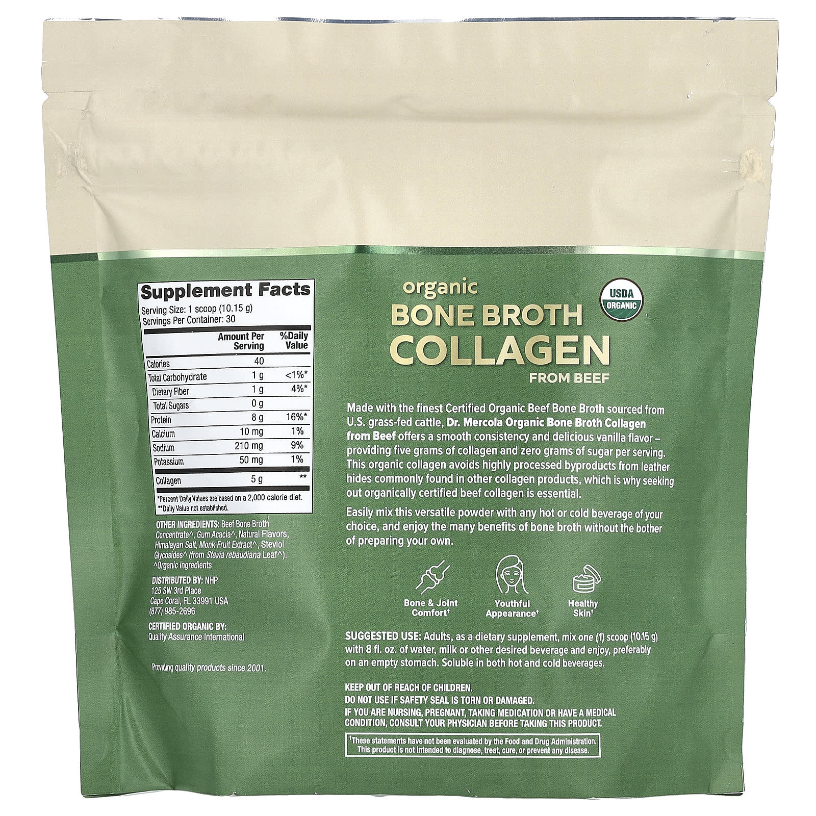 Изготовлено из лучшего сертифицированного органического говяжьего костного бульона, полученного от американского крупного рогатого скота травяного откорма, от Dr. Органический коллаген из говядины Mercola Bone Broth имеет нежную консистенцию и восхитительный ванильный вкус. Он содержит 5 грамм коллагена и ноль граммов сахара на порцию. В этом органическом коллагене не используются побочные продукты с высокой степенью обработки из кожаных шкур, которые обычно содержатся в других продуктах с коллагеном. Поэтому важно искать органически сертифицированный говяжий коллаген.