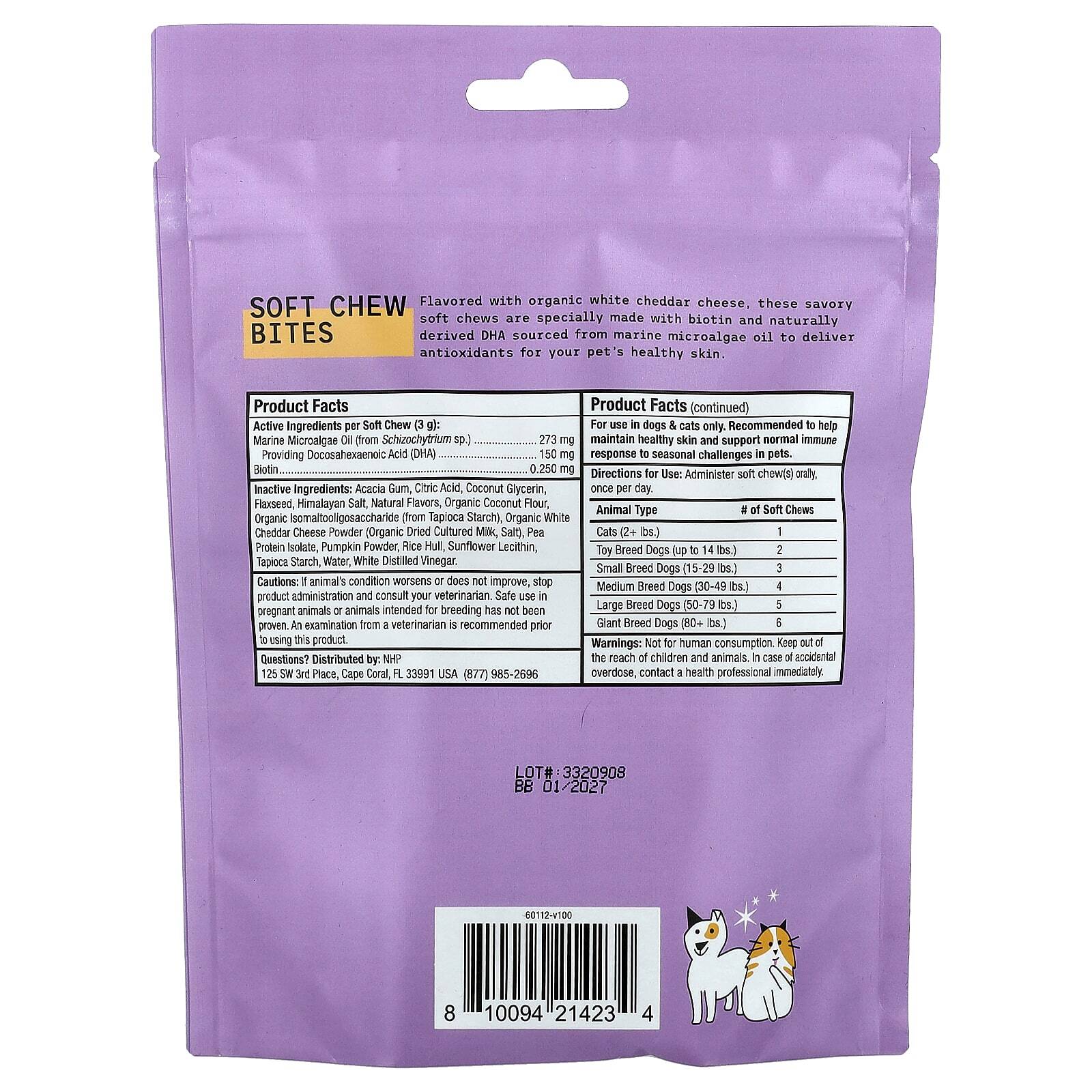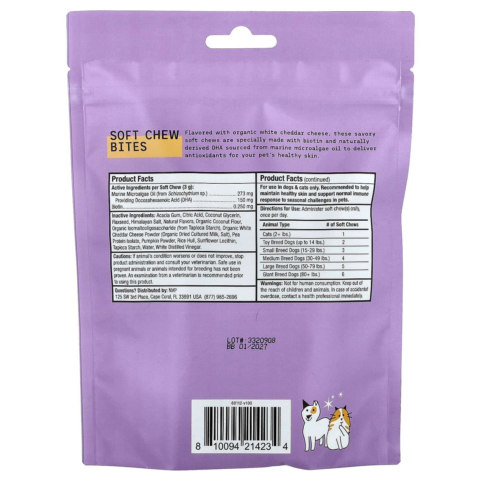 Эти пикантные мягкие жевательные таблетки, приправленные органическим белым сыром чеддер, специально изготовлены из биотина и натуральной ДГК, полученной из масла морских микроводорослей, чтобы обеспечить антиоксиданты для здоровой кожи вашего питомца.