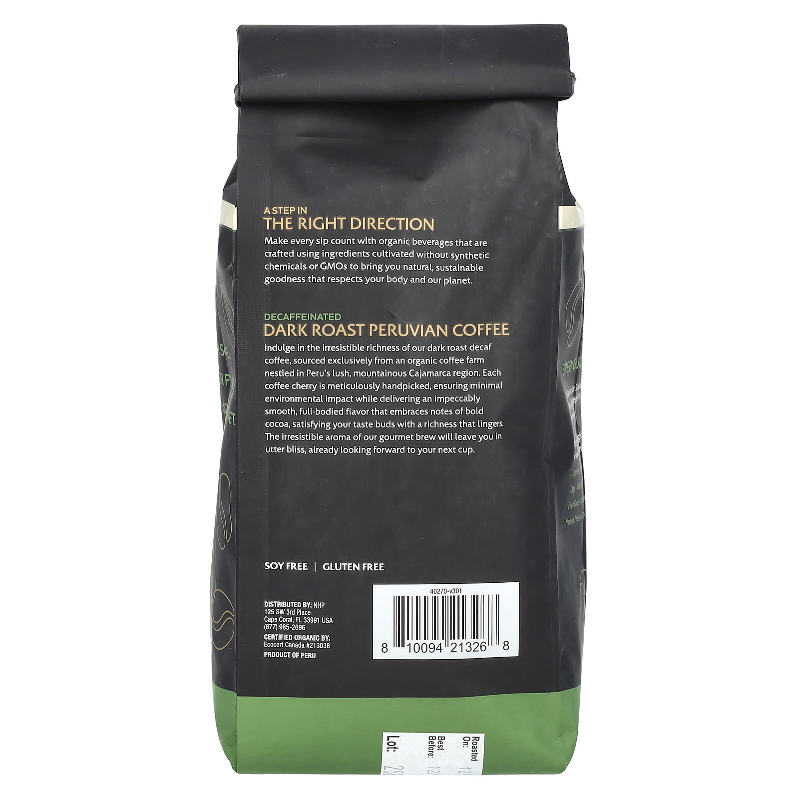 Наслаждайтесь неотразимым и насыщенным вкусом нашего кофе без кофеина темной обжарки, произведенного исключительно на органической кофейной ферме, расположенной в плодородном горном регионе Кахамарка в Перу. Каждая кофейная ягода тщательно отбирается вручную. Это обеспечивает минимальное воздействие на окружающую среду и обеспечивает безупречно мягкий, насыщенный вкус с насыщенными нотками какао, дарящий вашим вкусовым рецепторам насыщенность и насыщенность. Непревзойденный аромат нашего изысканного напитка подарит вам невероятное блаженство и ожидание следующей чашки.