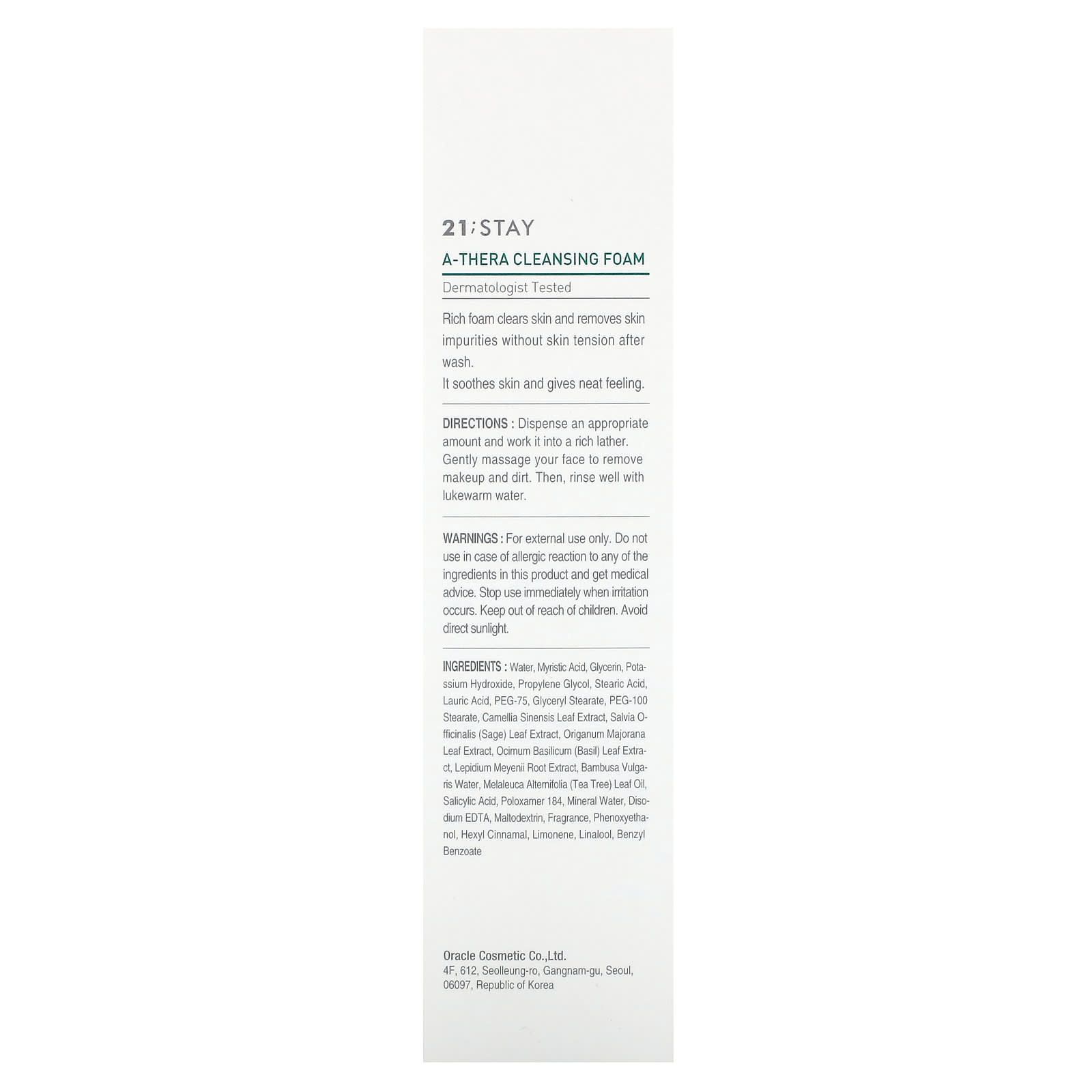 Вода, миристиновая кислота, глицерин, гидроксид калия, пропиленгликоль, стеариновая кислота, лауриновая кислота, ПЭГ-75, глицерил стеарат, ПЭГ-100 стеарат, экстракт листьев зеленого чая (Camellia sinensis), экстракт листьев шалфея (Salvia officinalis), органический экстракт листьев розмарина, экстракт листьев базилика (Ocimum basilicum), экстракт корня маки (Lepidium meyenii), вода из бамбука (Bambusa vulgaris), масло из листьев чайного дерева (Melaleuca alternifolia), салициловой кислоты, полоксамер 184, минеральная вода, двунатриевая ЭДТК, мальтодекстрин, отдушка, феноксиэтанол, гексил циннамал, лимонен, линалоол, бензилбензоат.