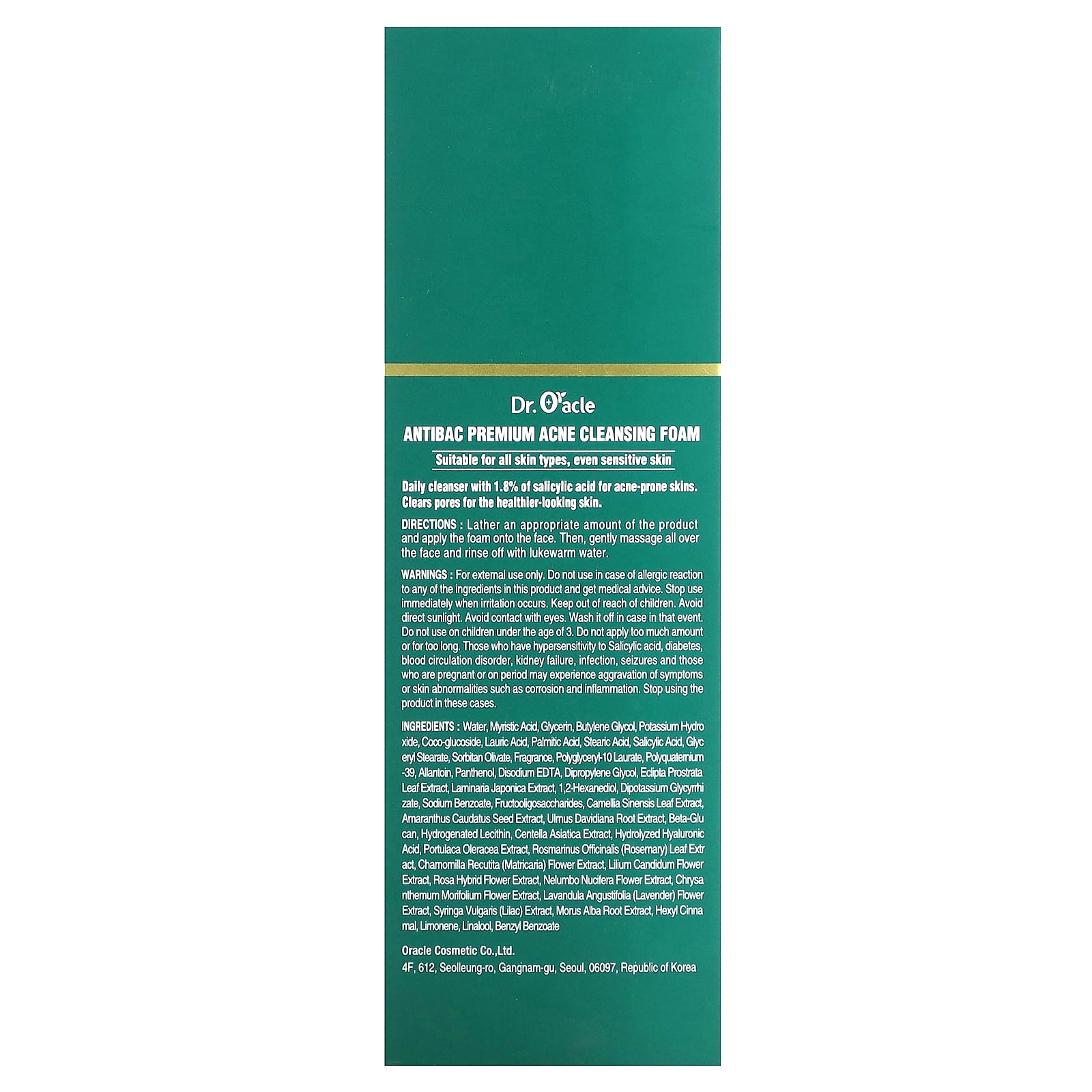 Вода, миристиновая кислота, глицерин, бутиленгликоль, гидроксид калия, кокоглюкозид, лауриновая кислота, пальмитиновая кислота, стеариновая кислота, салициловой кислоты, глицерил стеарат, сорбитан оливат, отдушка, полиглицерил-10 лаурат, поликватерниум-39, аллантоин, пантенол, двунатриевая ЭДТК, дипропиленгликоль, экстракт листьев эклипты простертой (Eclipta prostrata), экстракт ламинарии японской (Laminaria japonica), 1,2-гександиол, дикалия глицирризат, бензоат натрия, фруктоолигосахариды, экстракт листьев зеленого чая (Camellia sinensis), экстракт семян амаранта хвостатого (Amaranthus caudatus), экстракт корня вяза Давида (Ulmus davidiana), бета-глюкан, гидрогенизированный лецитин, экстракт готу колы (Centella asiatica), гидролизованная гиалуроновая кислота, экстракт портулака огородного (Portulaca oleracea), экстракт листьев розмарина (Rosmarinus officinalis), экстракт цветков ромашки лекарственной (Chamomilla recutita), экстракт цветков белой лилии (Lilium candidum), экстракт цветков гибридной розы (rosa hybrid), экстракт цветков лотоса орехоносного (Nelumbo nucifera), экстракт цветков хризантемы (Chrysanthemum morifolium), экстракт цветков лаванды (Lavandula angustifolia), экстракт сирени (Syringa vulgaris), экстракт корня белой шелковицы (Morus alba), гексил циннамал, лимонен, линалоол, бензилбензоат.