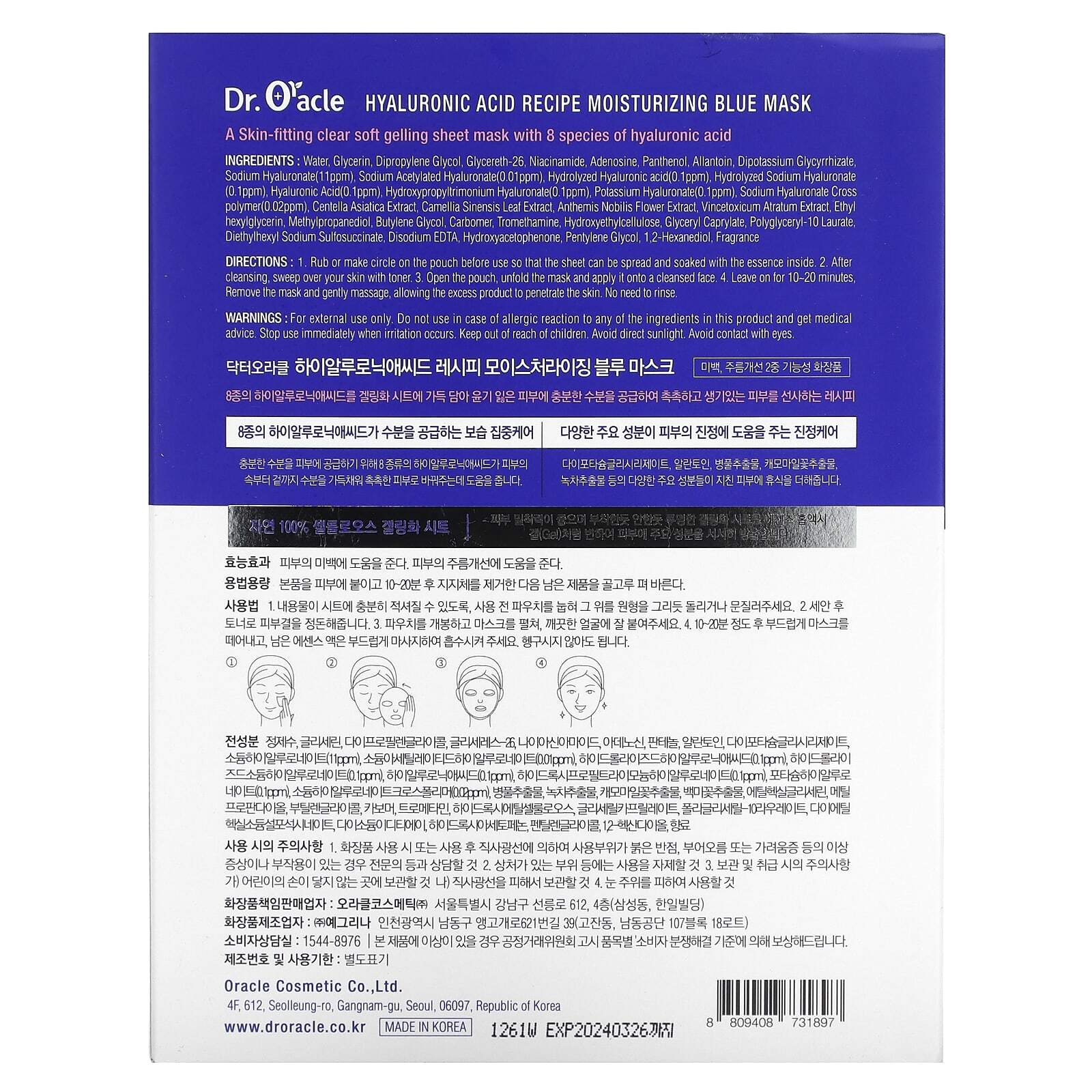 Облегающая прозрачная мягкая гелеобразующая тканевая маска с 8 видами гиалуроновой кислоты.