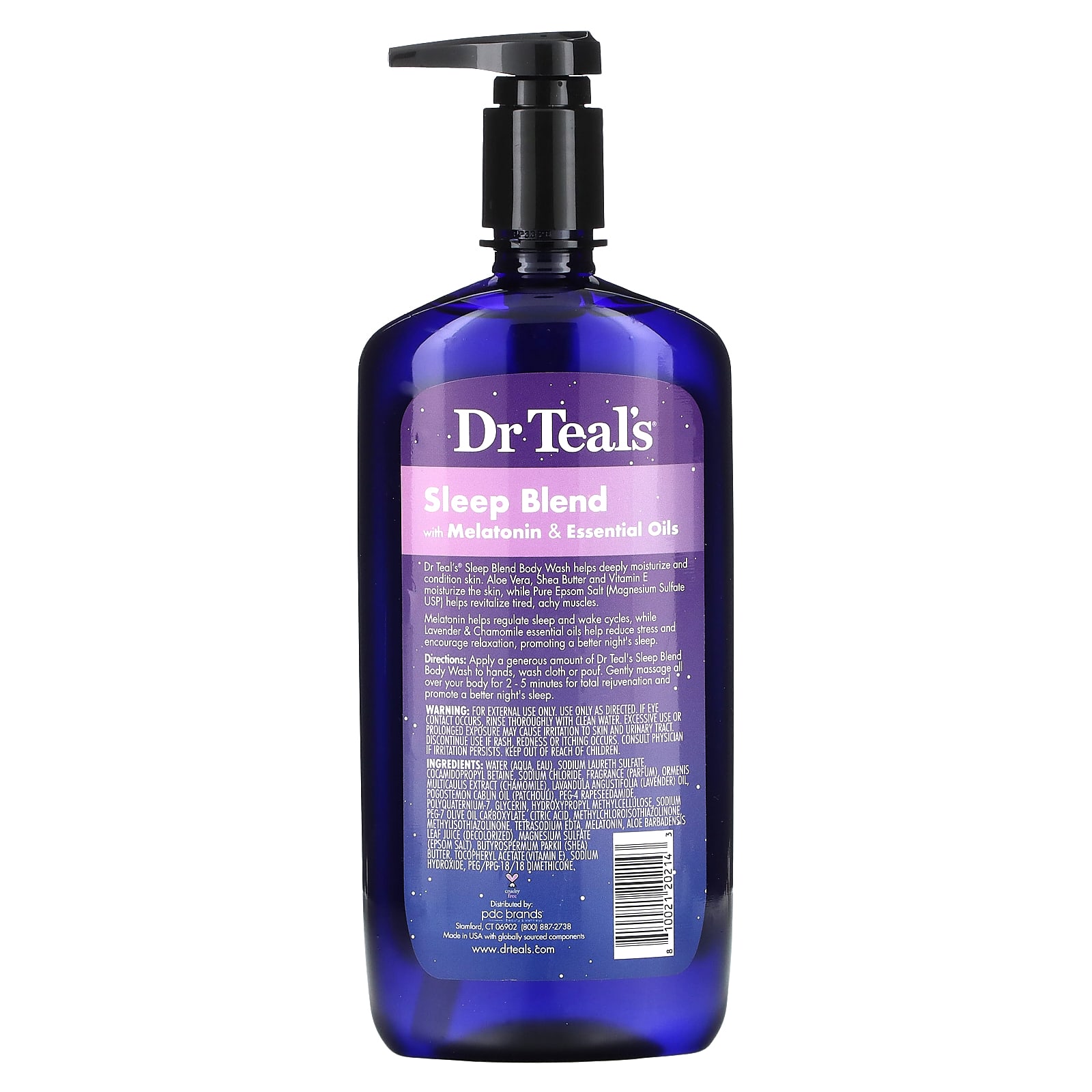 Гель для душа Dr Teal's® Sleep Blend помогает глубоко увлажнить и улучшить состояние кожи. Алоэ вера, масло ши и витамин Е увлажняют кожу, а чистая английская соль (сульфат магния USP) помогает оживить уставшие и ноющие мышцы.