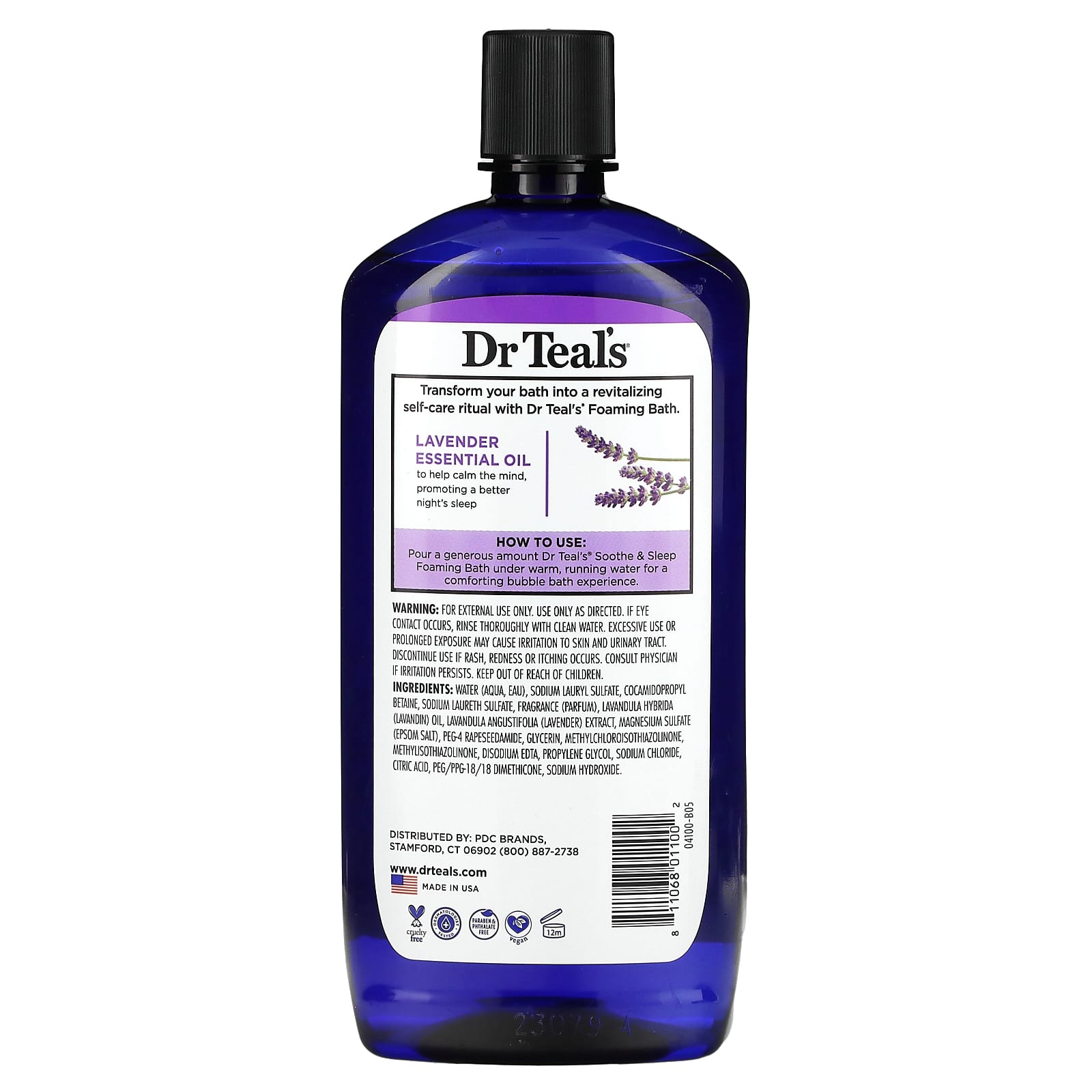 Налейте обильное количество пенки для ванны Sooth & Sleep от Dr Teal's® под теплую проточную воду, чтобы принять успокаивающую пену для ванны.