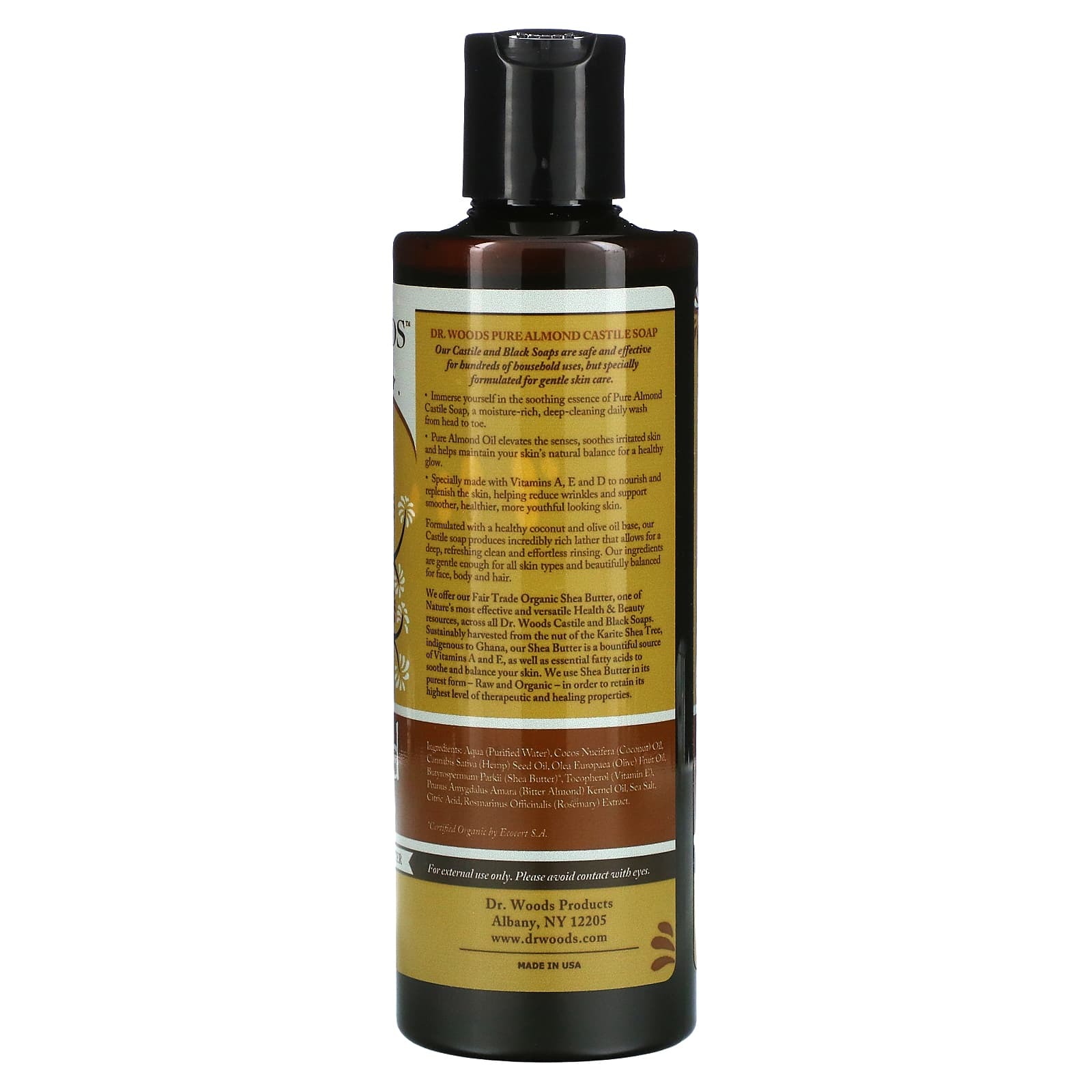 Мы используем наше органическое масло ши, закупленное по принципу справедливой торговли, которое является одним из самых эффективных и универсальных полезных ресурсов природы для красоты и здоровья, который компания Dr. Woods использует во всех кастильских и черных видах мыла. Наше масло ши, полученное экологически чистым способом из ореха дерева карите, произрастающего в Гане, является богатым источником витаминов А и Е, а также незаменимых жирных кислот, которые успокаивают и восстанавливают баланс вашей кожи. Мы используем масло ши в самом чистом виде, то есть сырое и органическое, чтобы сохранить как можно больше его полезных и лечебных свойств.