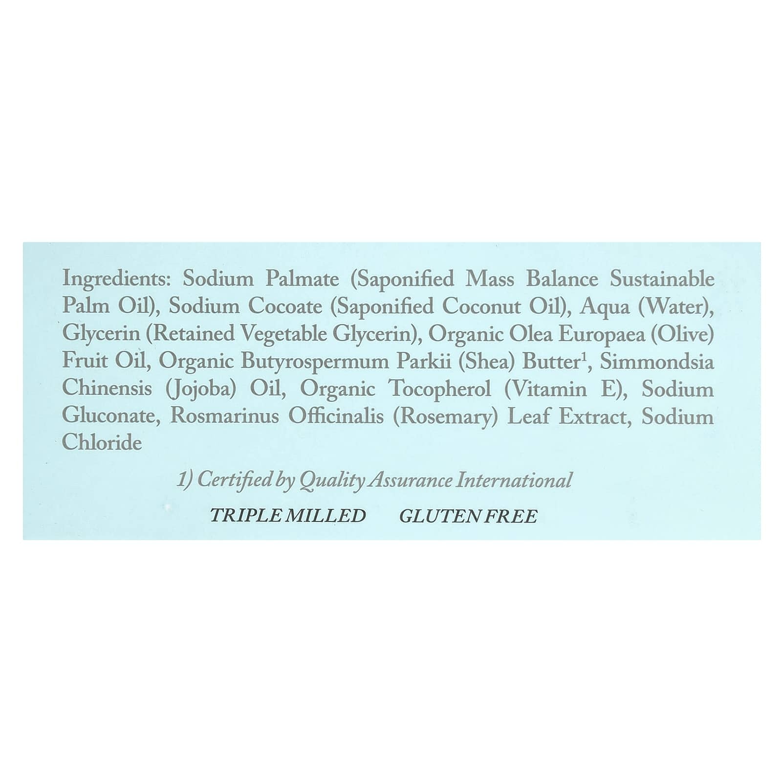 Пальмовое масло натрия (омыленное пальмовое масло с устойчивым балансом массы), кокоат натрия (омыленное кокосовое масло), вода (Aqua), глицерин (удерживаемый растительный глицерин), органическое оливковое масло (Olea europaea), органическое масло ши (Butyrospermum parkii), масло жожоба (Simmondsia chinensis), органический токоферол (витамин Е), глюконат натрия, экстракт листьев розмарина (Rosmarinus officinalis), хлорид натрия.