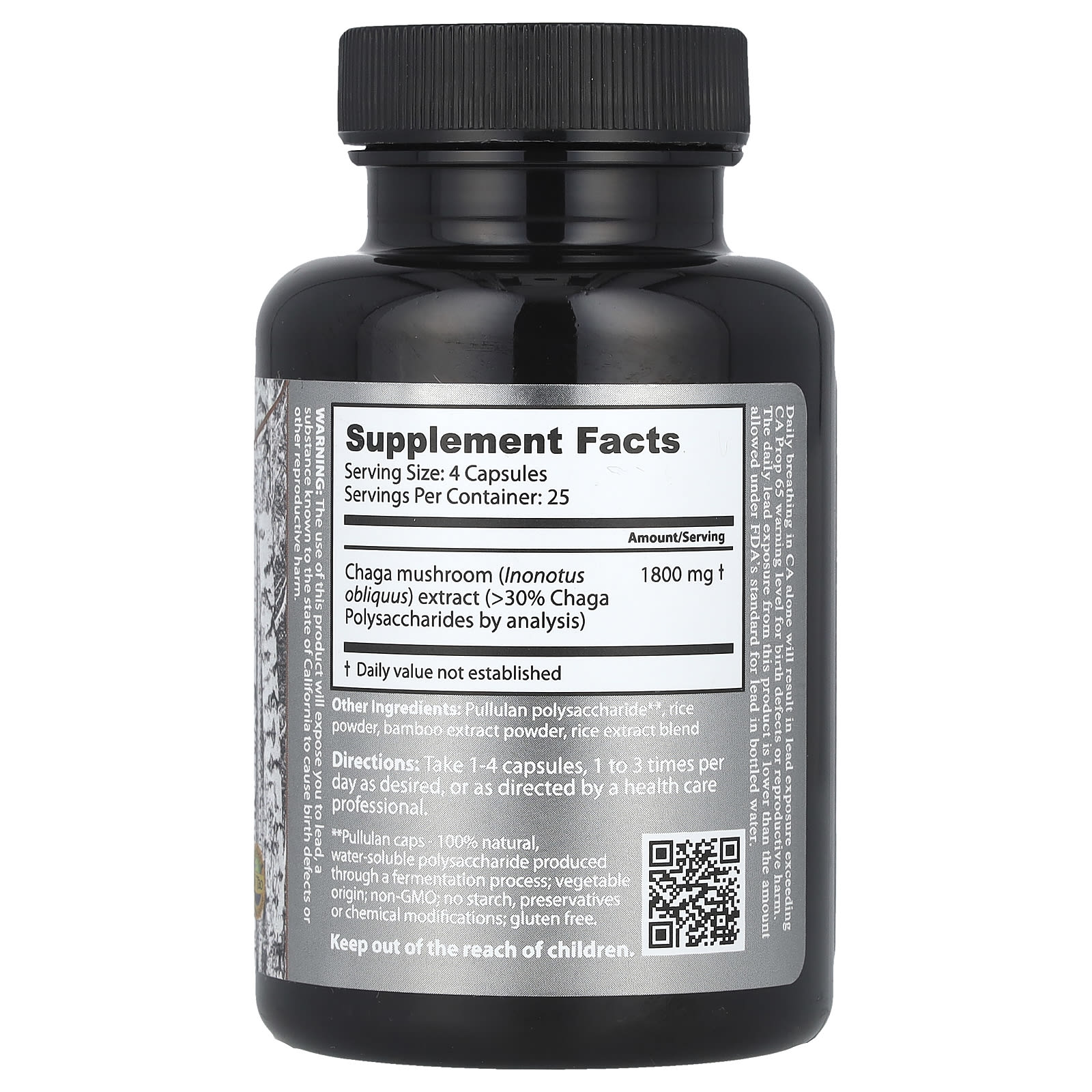 Дикая сибирская чага от Dragon Herbs — это экстракт полного спектра чаги (Inonotus obliquus), медленно растущего древесного гриба, который естественным образом растет на березах в Сибири. Полностью зрелую чагу собирают в дикой природе в отдаленных нетронутых лесах субарктической Сибири, лучшего в мире источника чаги. Этот гриб чага богат активными полисахаридами, меланином, фенольными соединениями и тритерпеноидами ланостанового типа. Это мощный антиоксидант. Чага извлекается с использованием ультрасовременной технологии для сохранения полного профиля активных компонентов.