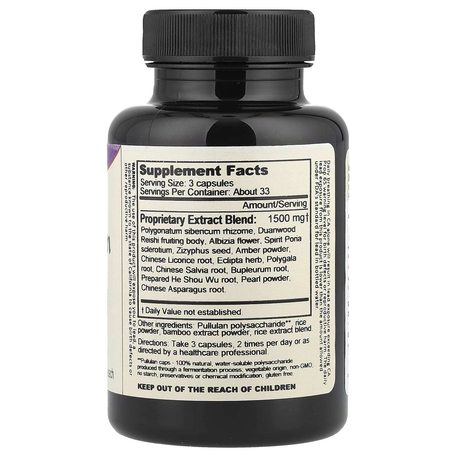 Запатентованная смесь экстрактов: Корневище полигонатума сибирского, плодовое тело рейши дюанвуд, цветок альбизии, спирит склероций (Spirit Poria sclerotium), семена зизифа, янтарный порошок, корень солодки китайской, трава эклипты, корень полигала, корень шалфея китайской, корень волнистости, готовый корень хе-шу-ву, порошок жемчуга, китайская спаржа корень. | 1500 мг | † |