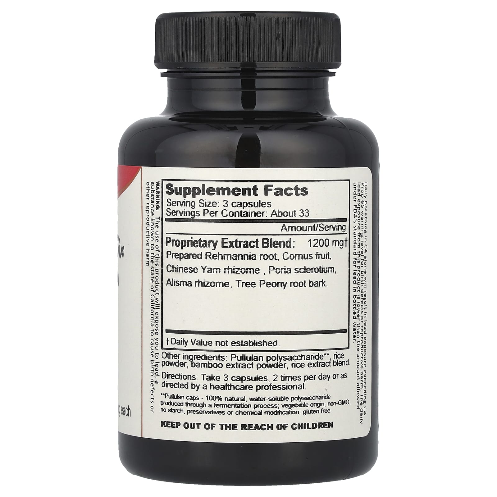 | Запатентованная смесь экстрактов: Приготовленные корень реманнии, плоды кизила, корневище китайского ямса, склероций (Poria sclerotium), корневище ализмы, кора корня древовидного пиона. | 1200 мг | † |