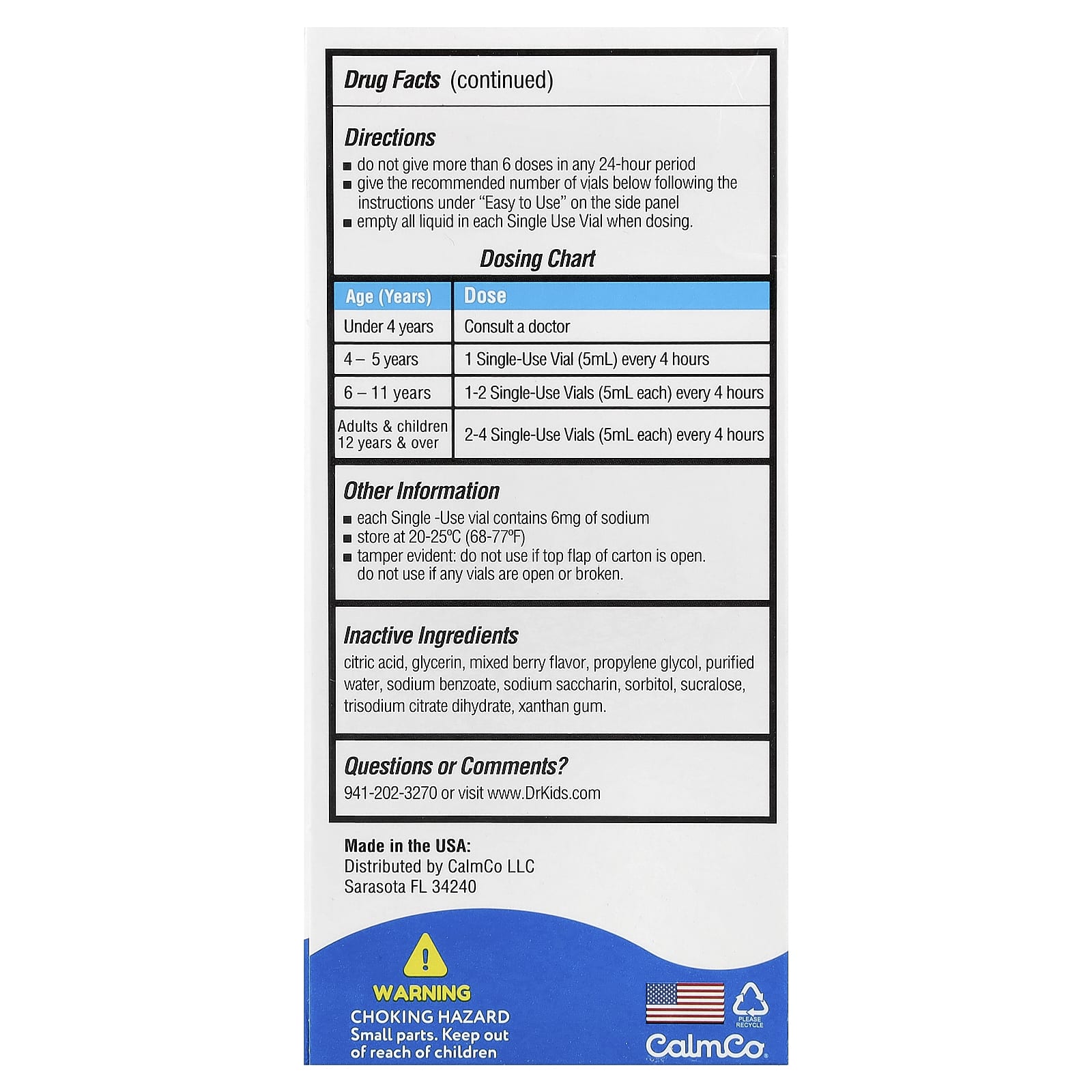 - Не давайте более 6 доз в течение 24 часов.