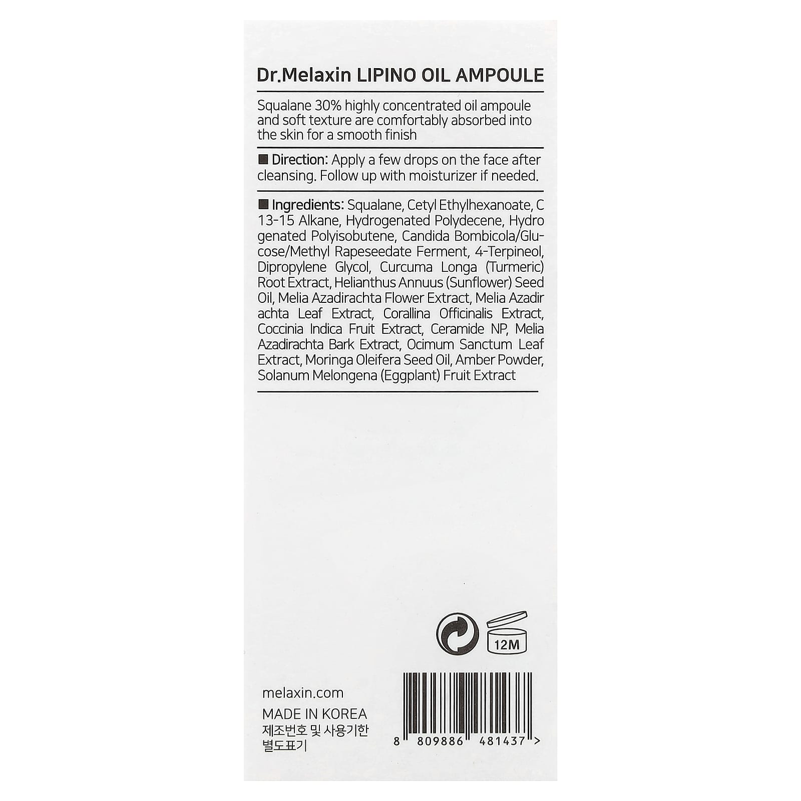 Сквалан, цетилэтилгексаноат, c 13-15 алкан, гидрогенизированный полидецен, гидрогенизированный полиизобутен, кандида бомбикола (Candida bombicola)/глюкоза/фермент метила рапса, 4-терпинеол, дипропиленгликоль, экстракт корня куркумы (Curcuma longa), подсолнечное масло (Helianthus annuus), экстракт цветков дерева ним (Melia azadirachta), экстракт листьев дерева ним (Melia azadirachta), экстракт кораллины лекарственной (Corallina officinalis), экстракт плодов кокцинии индийской (Coccina indica), керамид NP, экстракт коры дерева ним (Melia azadirachta), экстракт листьев туласи (Ocimum sanctum), масло из семян моринги масличной (Moringa oleifera), янтарный порошок, экстракт плодов баклажана (Solanum melongena).