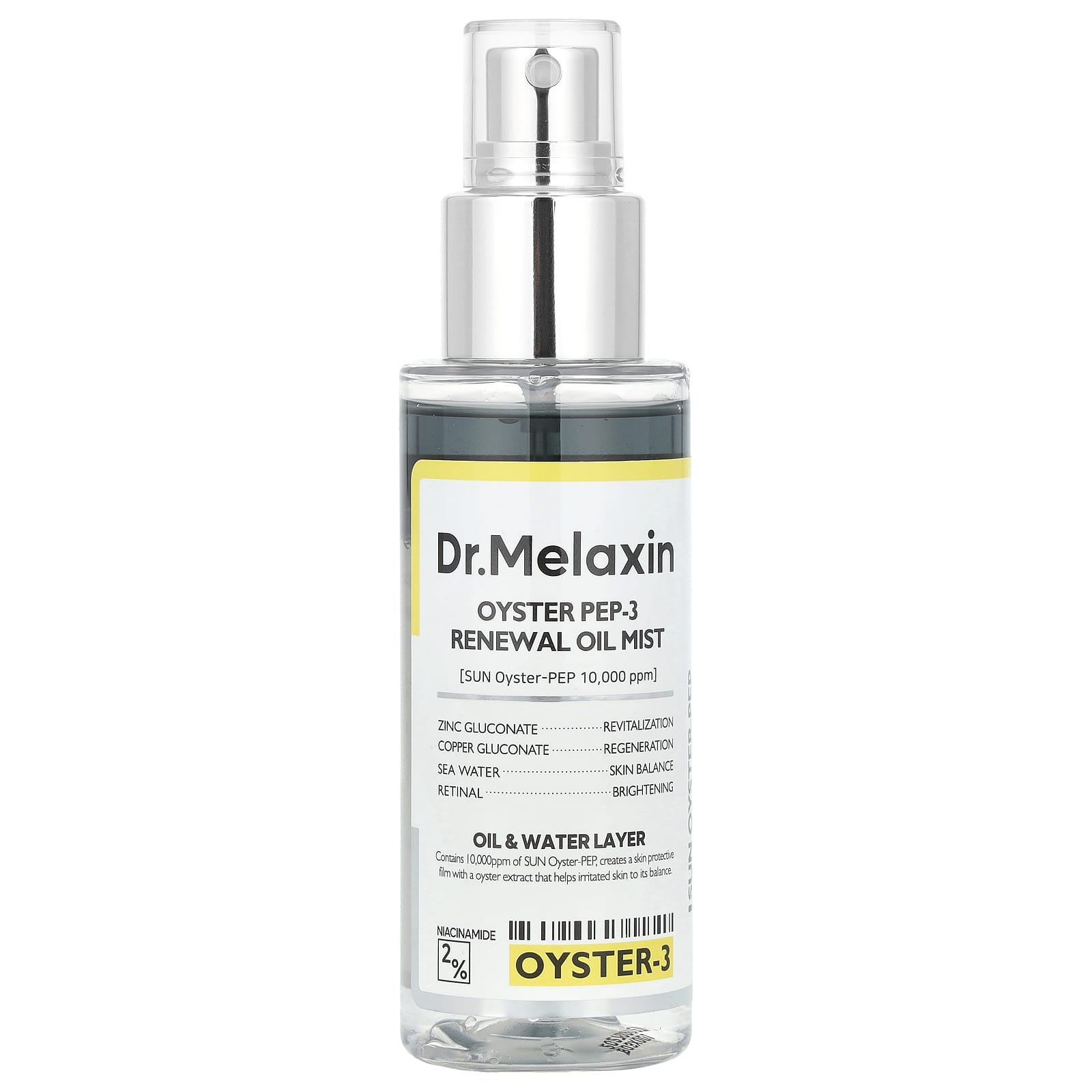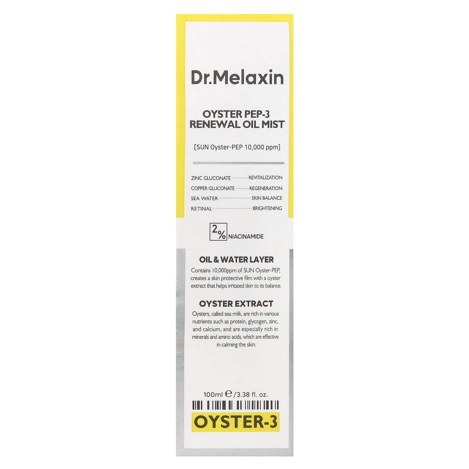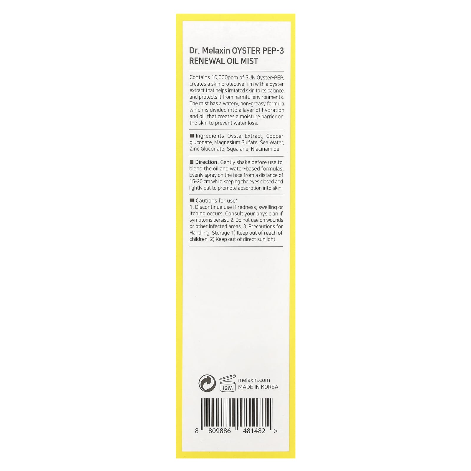 Цельнопищевой магний Melaxin Oyster Pep-3 Renewal Oil Mist Содержит 10 000 част. / Млн SUN Oyster-PEP, образует защитную пленку с экстрактом устрицы, который помогает сбалансировать раздраженную кожу и защищает ее от вредных воздействий окружающей среды. Моча имеет водянистую нежирную формулу, которая разделена на увлажняющий и масляный слой, который создает на коже водный барьер, предотвращающий потерю воды.
