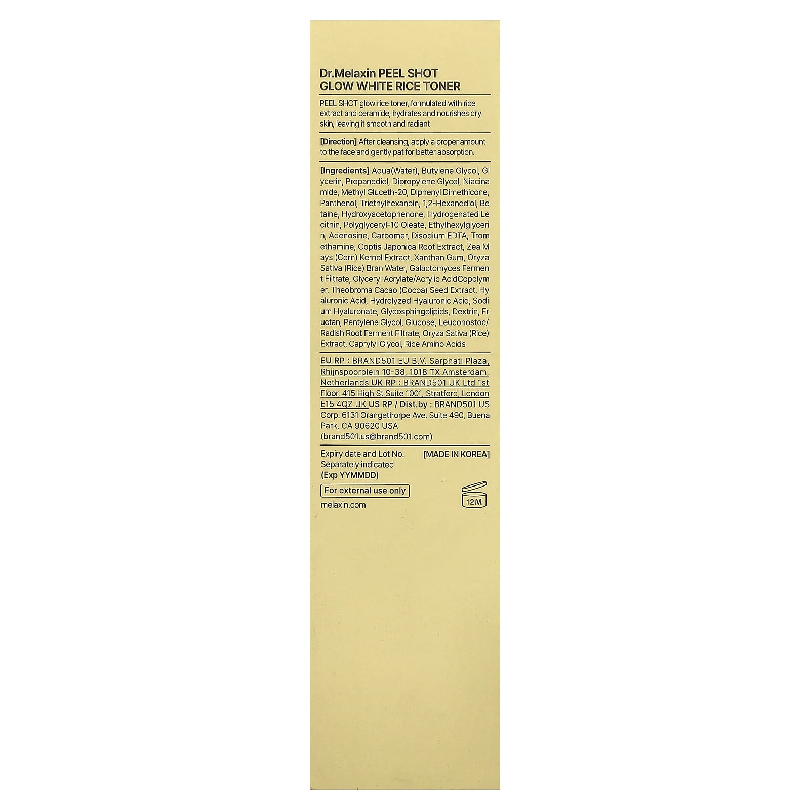 Тонизирующий рисовый тоник Peel Shot, содержащий экстракт риса и керамид, увлажняет и питает сухую кожу, делая ее гладкой и сияющей.
