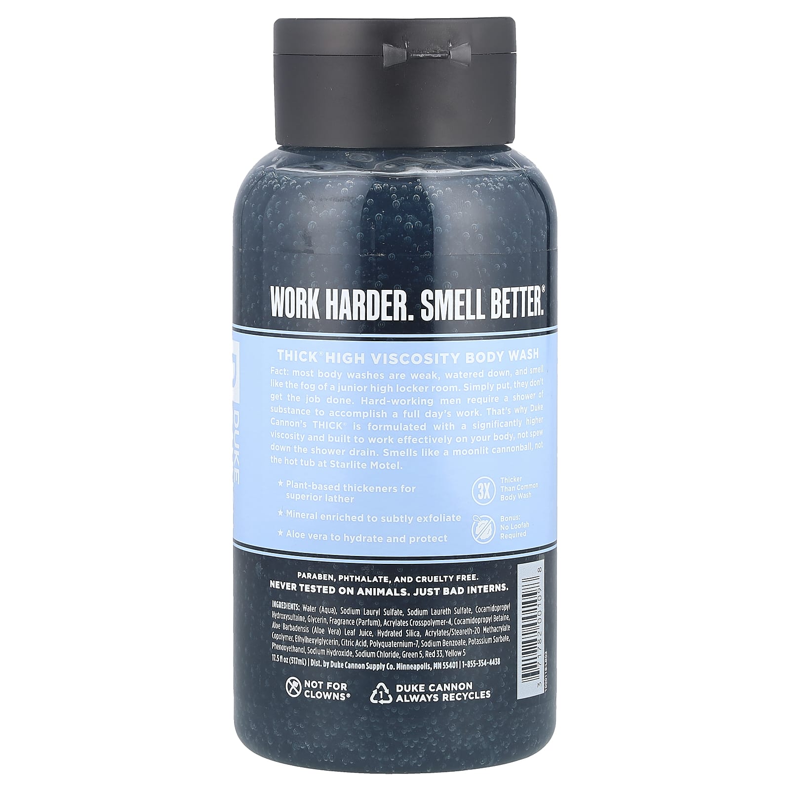 Факт: большинство гелей для душа слабые, разбавленные и пахнут туманом в раздевалке. Проще говоря, они не выполняют свою работу. Трудолюбивым мужчинам требуется активный душ, чтобы выполнять полный рабочий день. Вот почему средство THICK® от Duke Cannon имеет значительно более высокую вязкость и эффективно воздействует на организм, а не выбрасывается в канализацию. Пахнет залитым лунным светом пушечным ядром, а не джакузи в мотеле Starlite.
