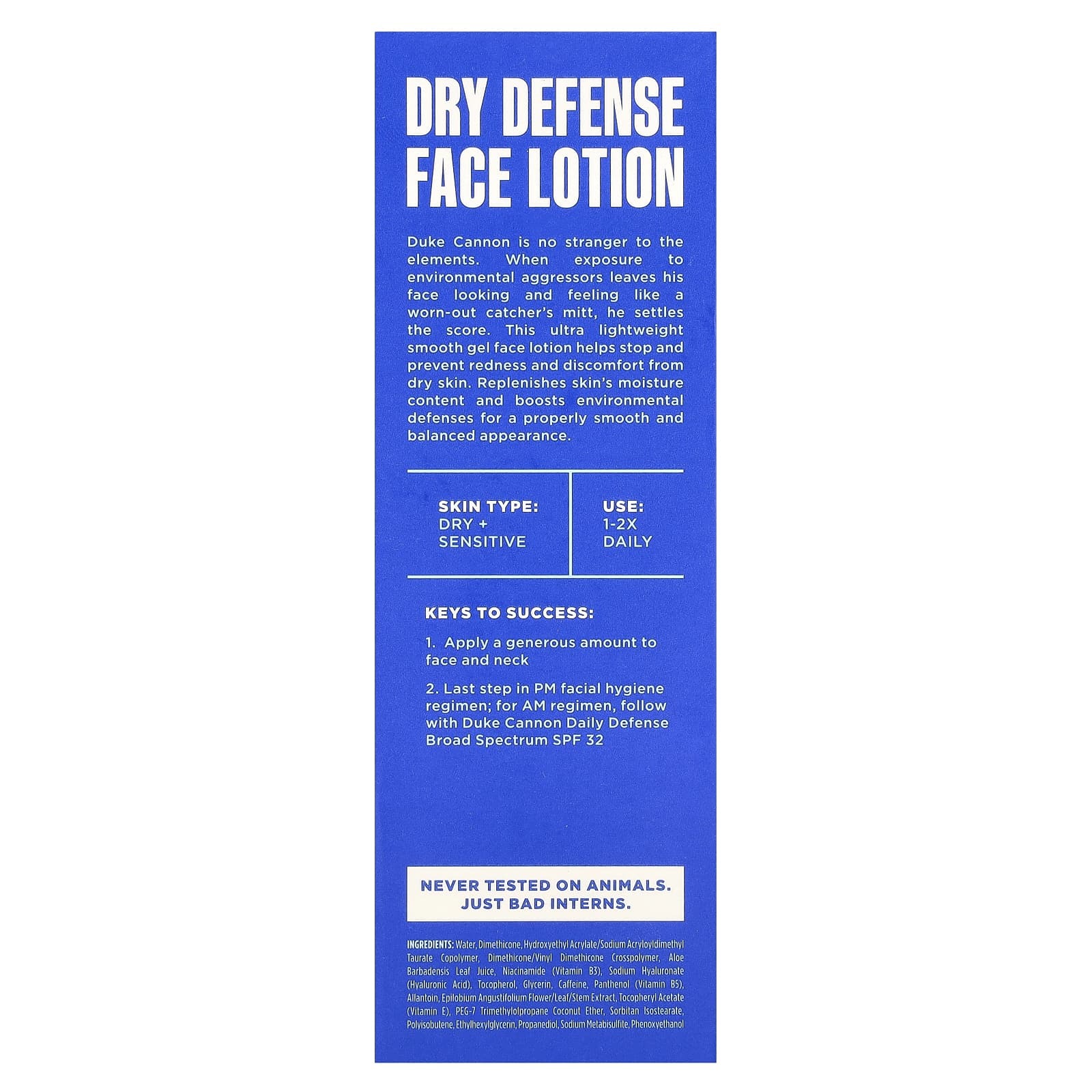 Duke Cannon не привыкать к стихиям. Когда из-за агрессивного воздействия окружающей среды его лицо выглядит и кажется похожим на изношенную перчатку, он сводит счет. Этот ультралегкий гладкий гель-лосьон для лица помогает остановить и предотвратить покраснение и дискомфорт на сухой коже. Восполняет содержание влаги в коже и повышает защитные свойства кожи, делая ее гладкой и сбалансированной.